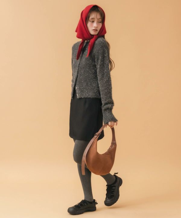 ざっくりニットと合わせて季節感のあるレディライクな着こなしに。