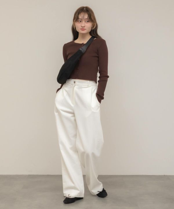 キャメルはアイボリーやベージュ系のワイドパンツ、