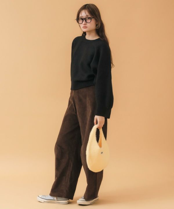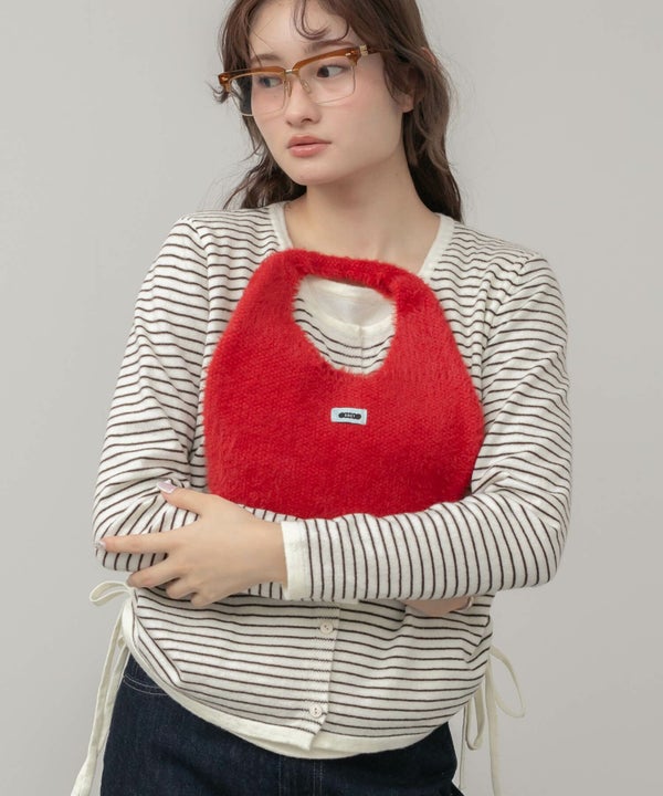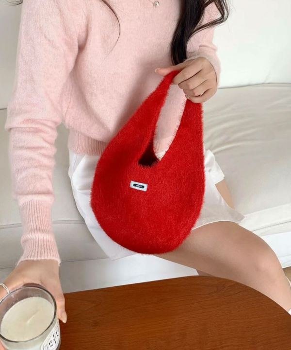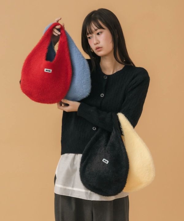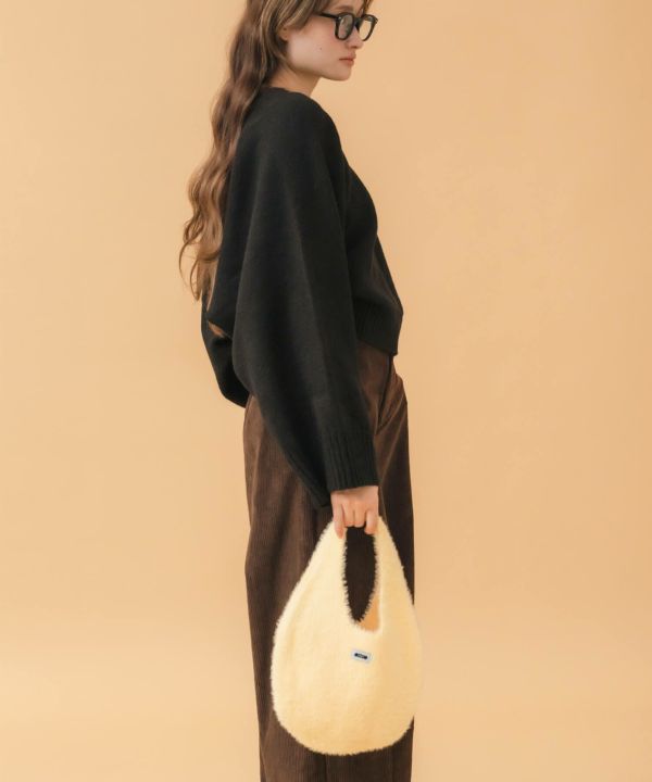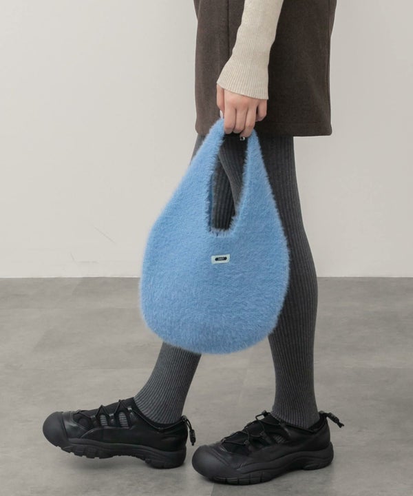 ころんと丸いフォルムが魅力のニットバッグ。