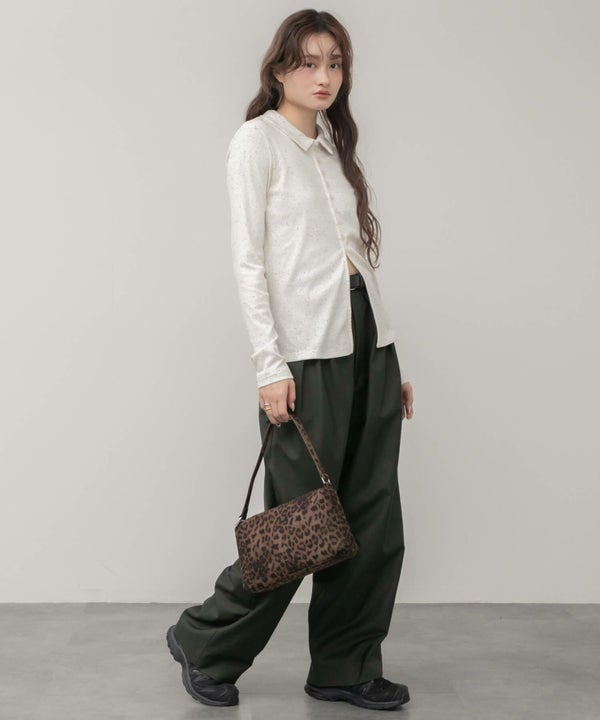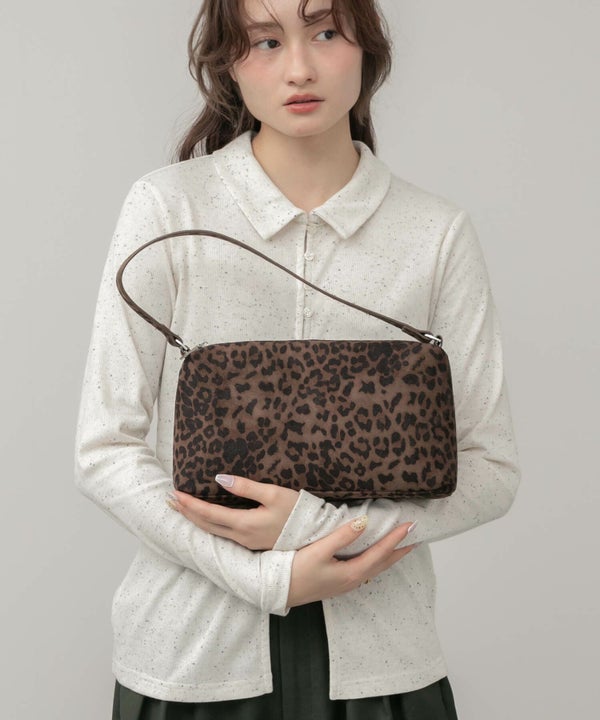 落ち着いたトーンのレオパード柄を、ワンハンドルのミニマルなフォルムに落とし込んだショルダーバッグ。