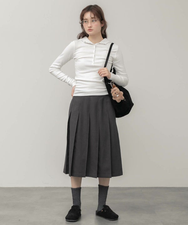 ニットやカットソーに合わせたシンプルな装いはもちろん、チェック柄やプリーツスカートなど、柄アイテムとも相性良くまとまります。