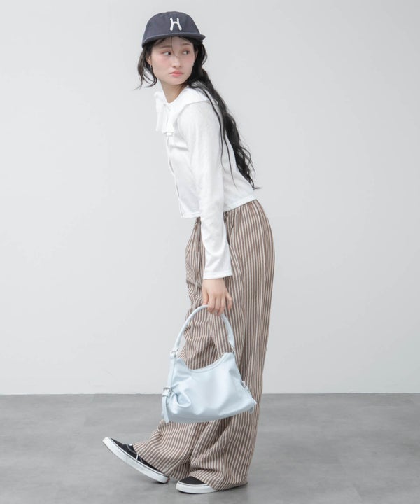 コンパクトなサイズ感なので、ワイドパンツやボリュームのあるコーデともバランスが取りやすいです。