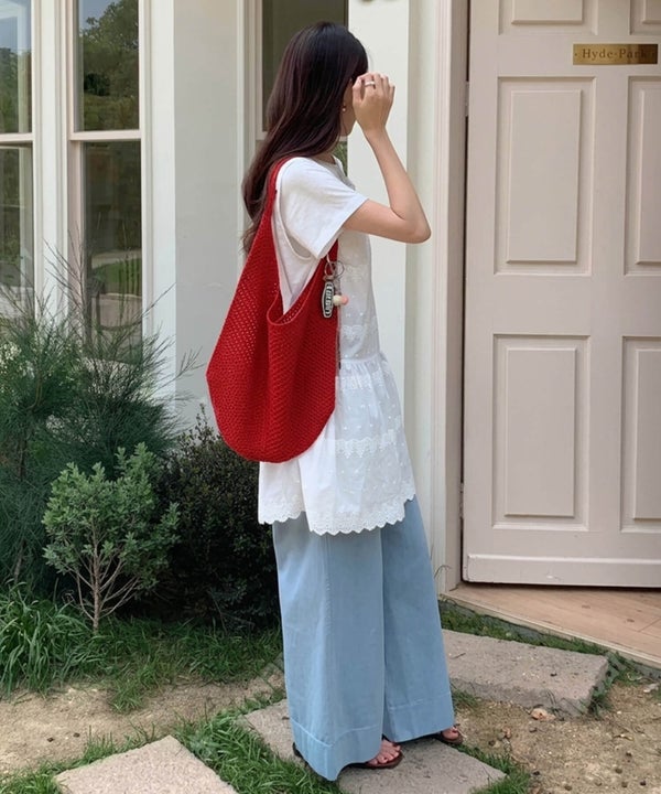 ワンピースやレースアイテムと合わせて、甘さを少しカジュアルに崩すのもおすすめ。