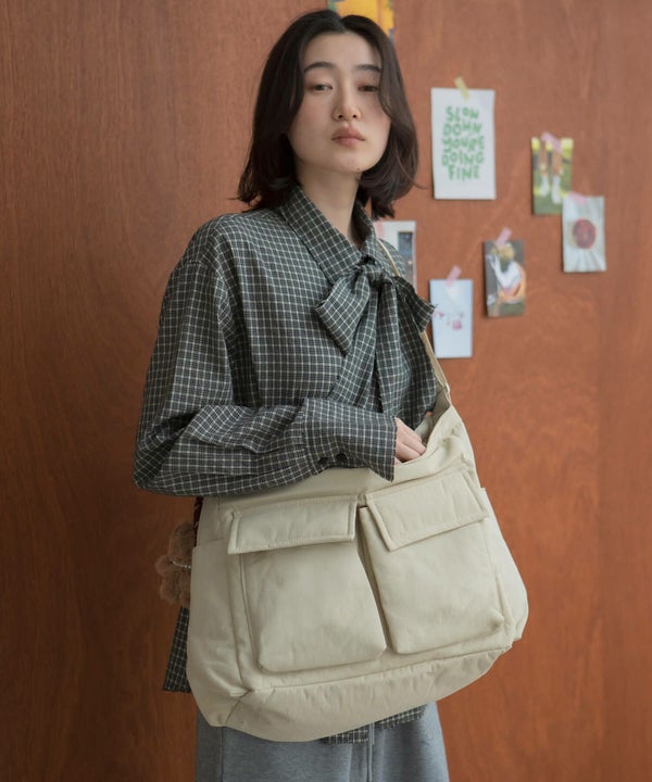 ボリューム感のあるフォルムが、シンプルな装いに程よい立体感をプラス。