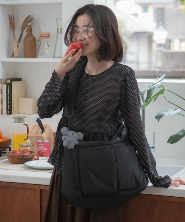 肩掛けしやすい太めストラップで、安定感も◎