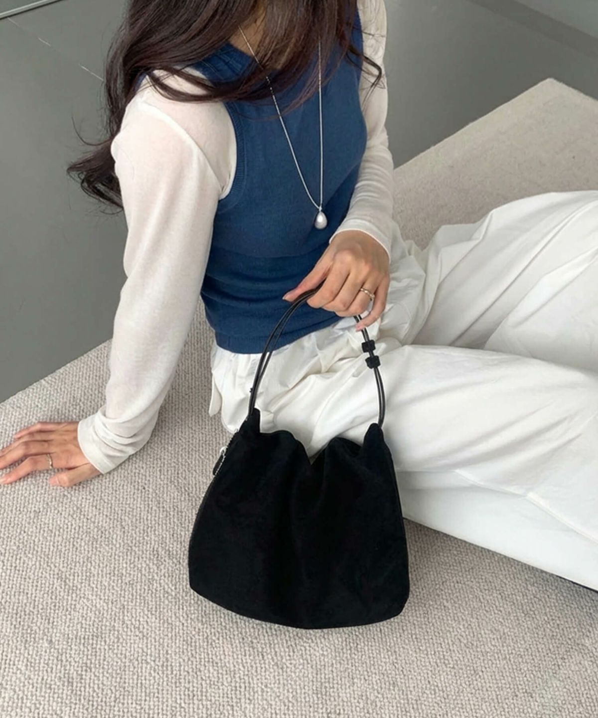他の画像を見る コロンとした円柱型でスタイリングのポイントになるハンドバッグ One Handle Suede Bucket Bag ¥ 6,600 ¥ 5,280 税込 カートに入れる お気に入りに登録する
