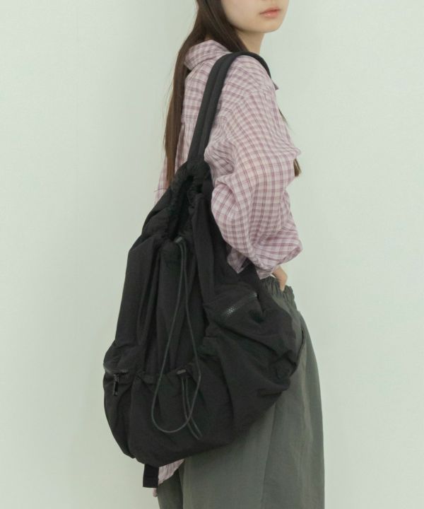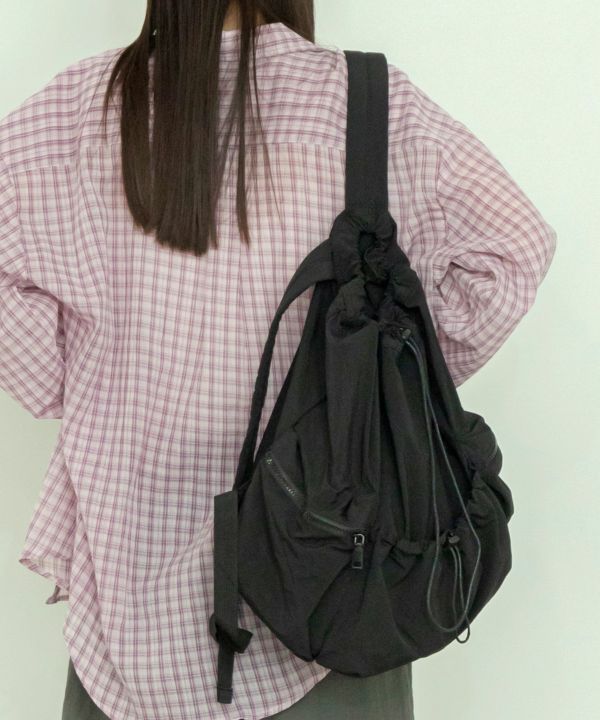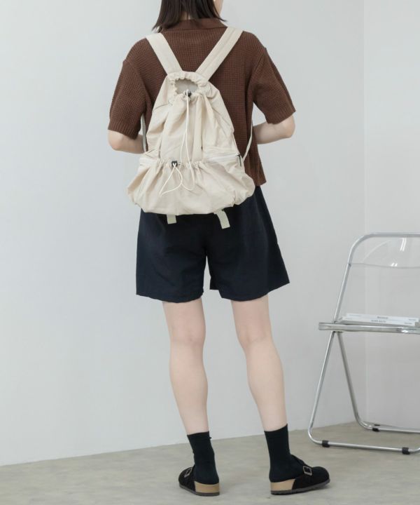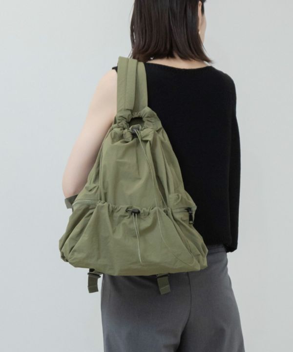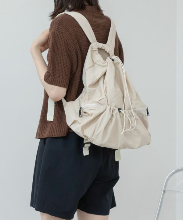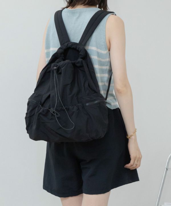 フロントに配した3つの大きなポケットがアクセントになったリュック。マチが広く、A4サイズも収納できるたっぷりサイズなので通学バッグやトラベルバック、マザーズバックとしても大活躍。・アジャスター付きの中幅ショルダーで肩も疲れにくい・ドローコードがスポーティーな雰囲気です・柔らかい素材でくたっと感がこなれた印象に・底にもアジャスターがついており、マチのサイズ調整が可能です・底材が入っており安定しているのも魅力です