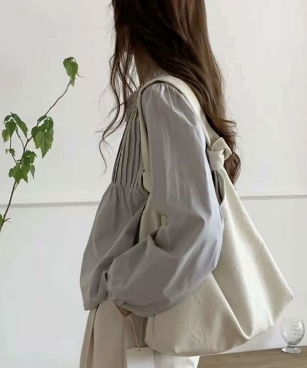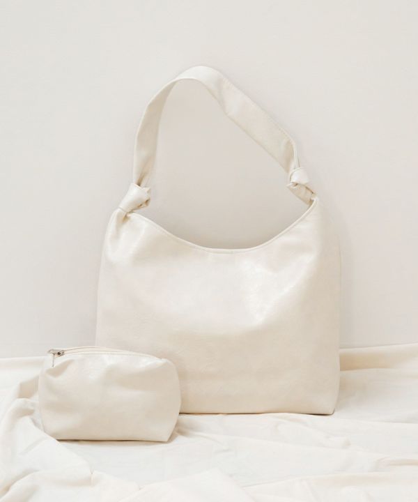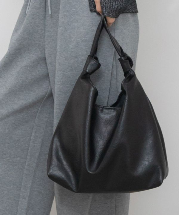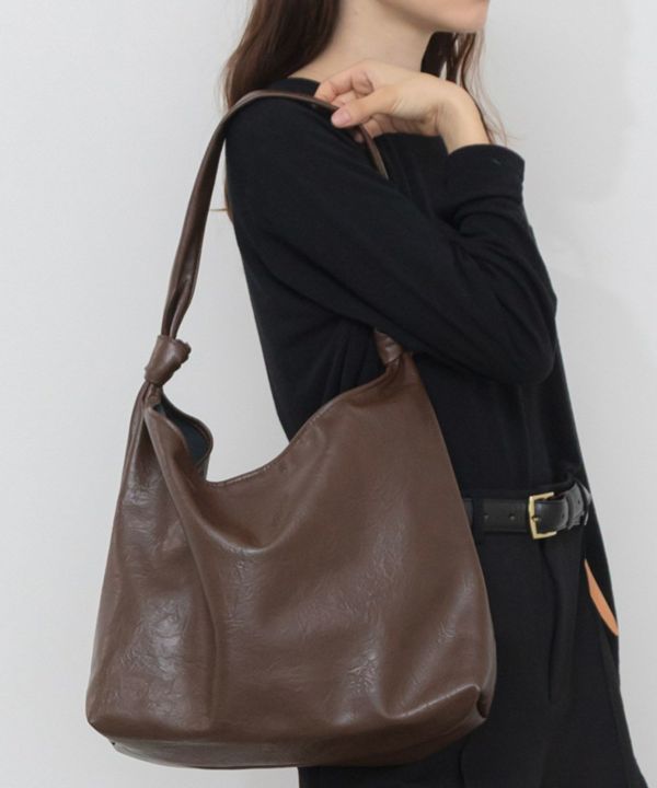 ショルダー部分の結び目デザインがスタイリングのアクセントに。
