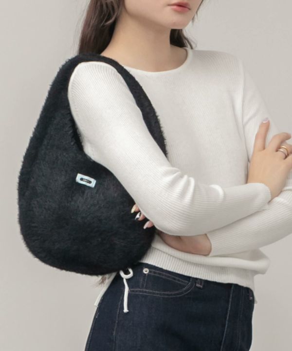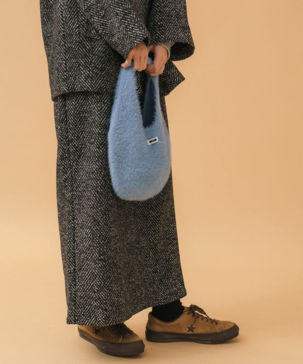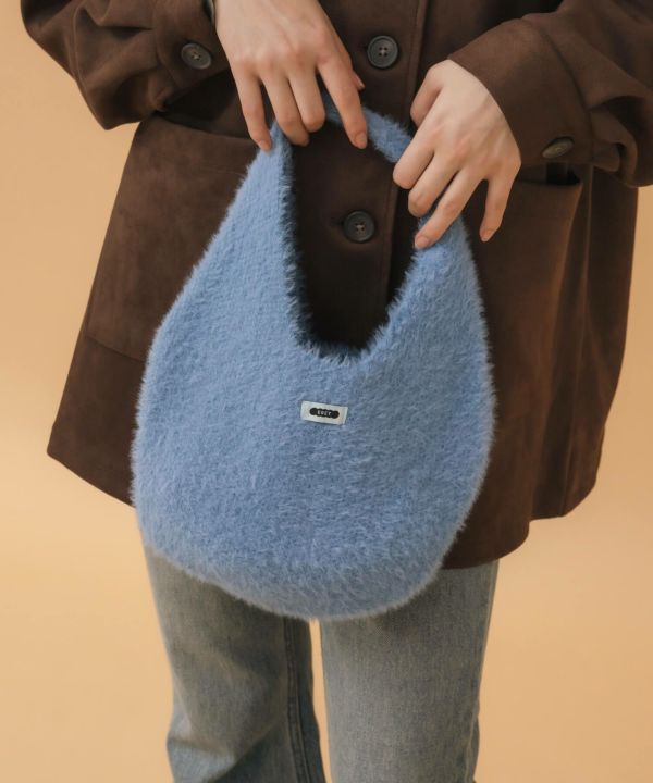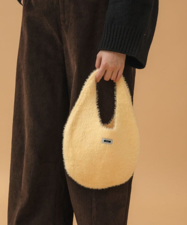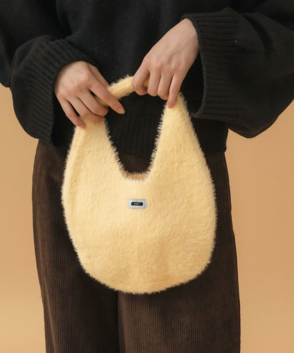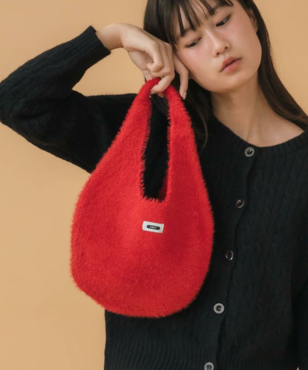 ころんと丸いフォルムが魅力のニットバッグ。
