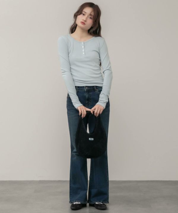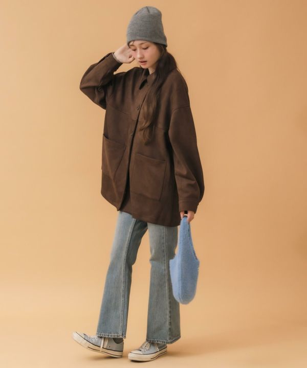 デニムにオーバーアウターのカジュアルコーデにも相性抜群◎