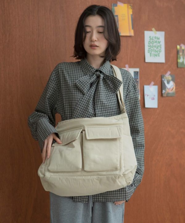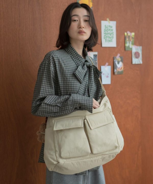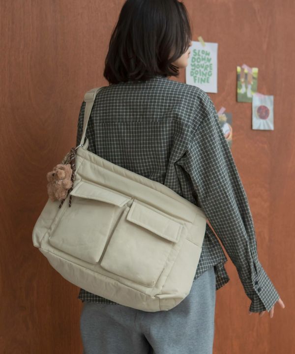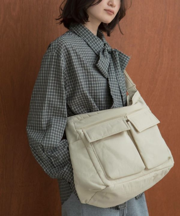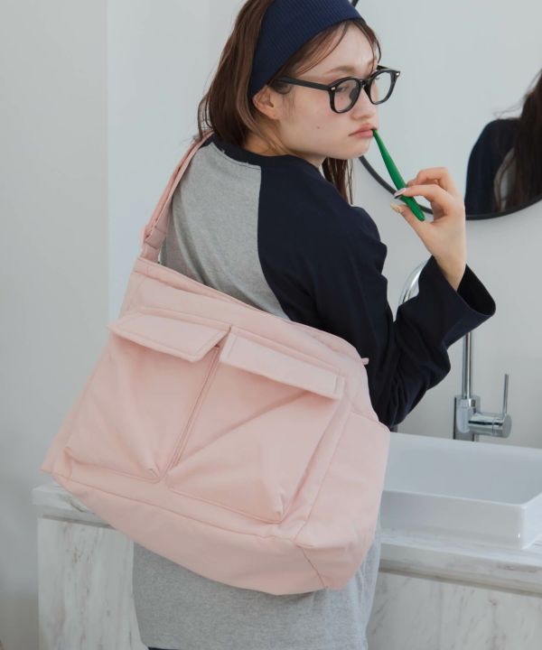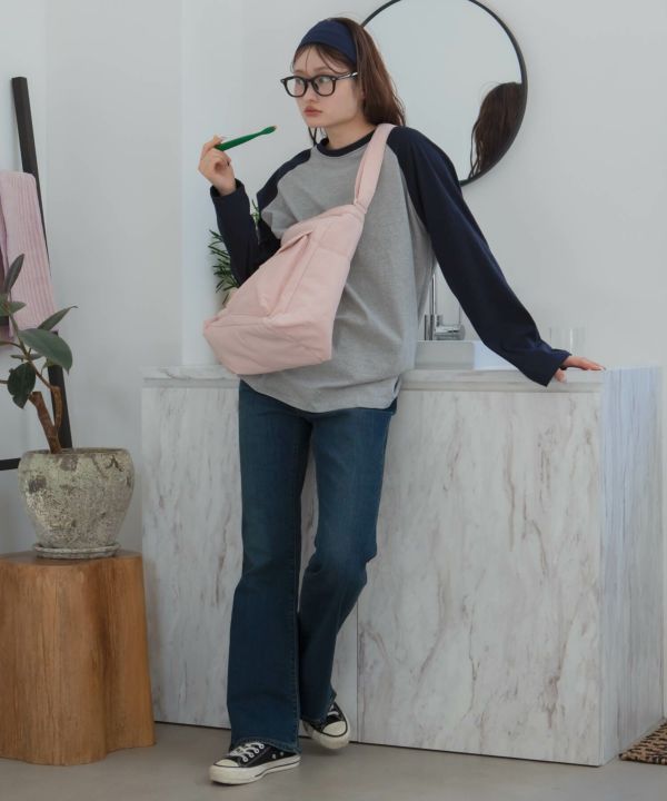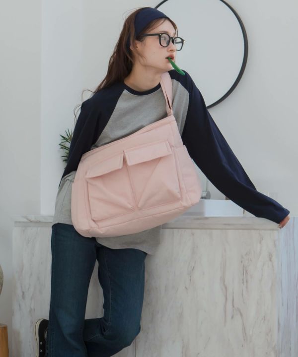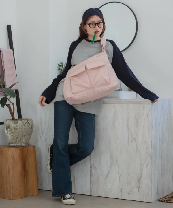 フロントの大きめポケットがアクセントになり、シンプルなコーデに自然と映える存在感に仕上げました。