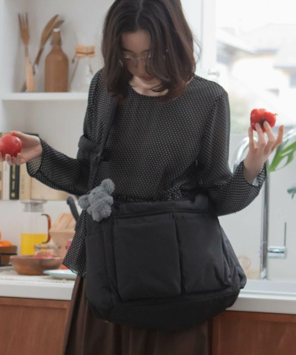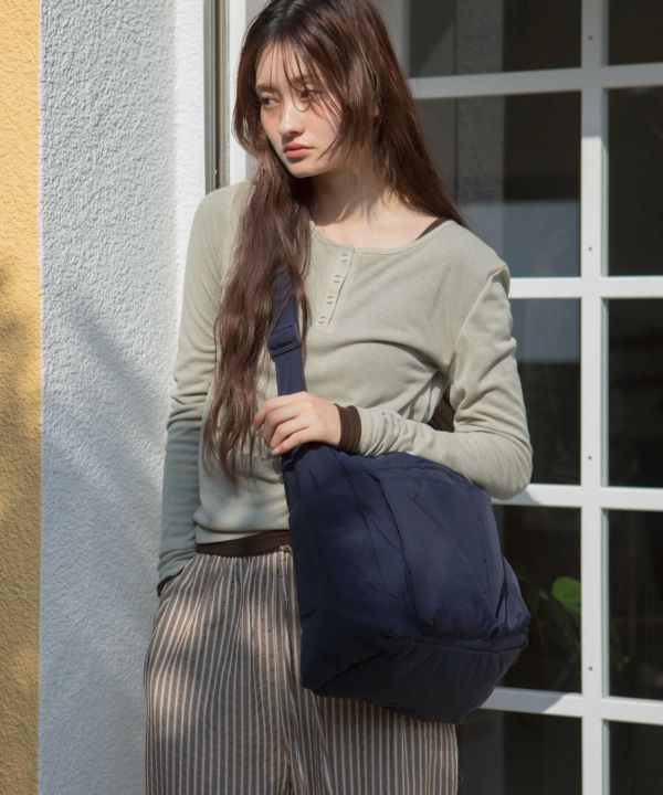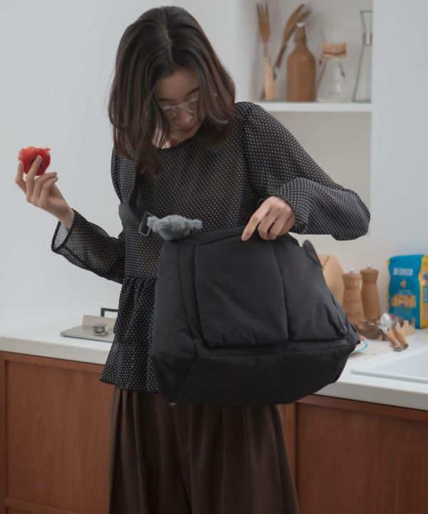 ボリューム感のあるフォルムが、シンプルな装いに程よい立体感をプラス。