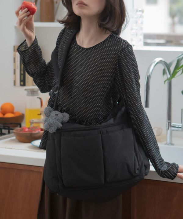 肩掛けしやすい太めストラップで、安定感も◎
