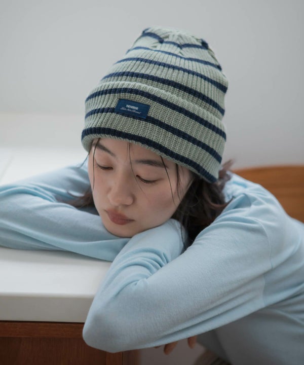 シンプルなコーデにさらっとプラスするだけで、スタイリングに動きが出るボーダービーニー。