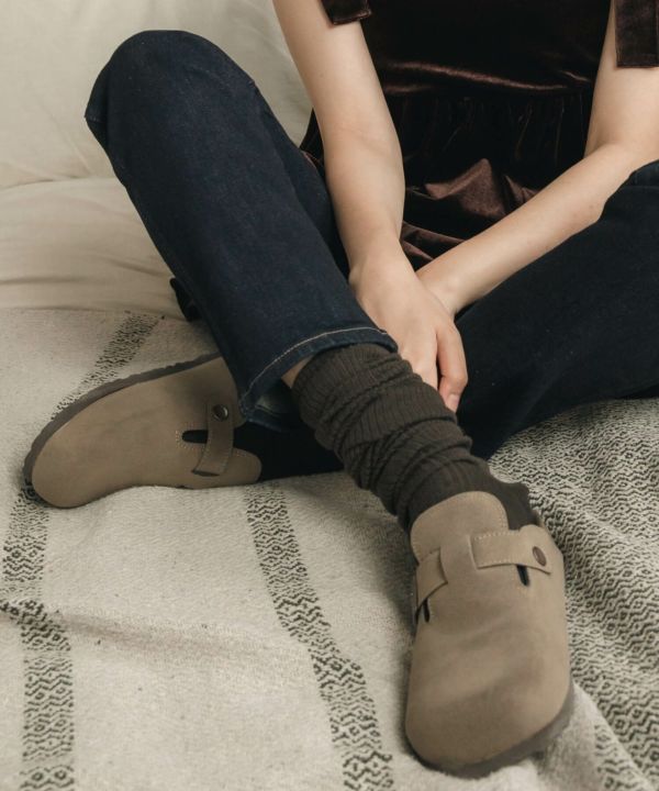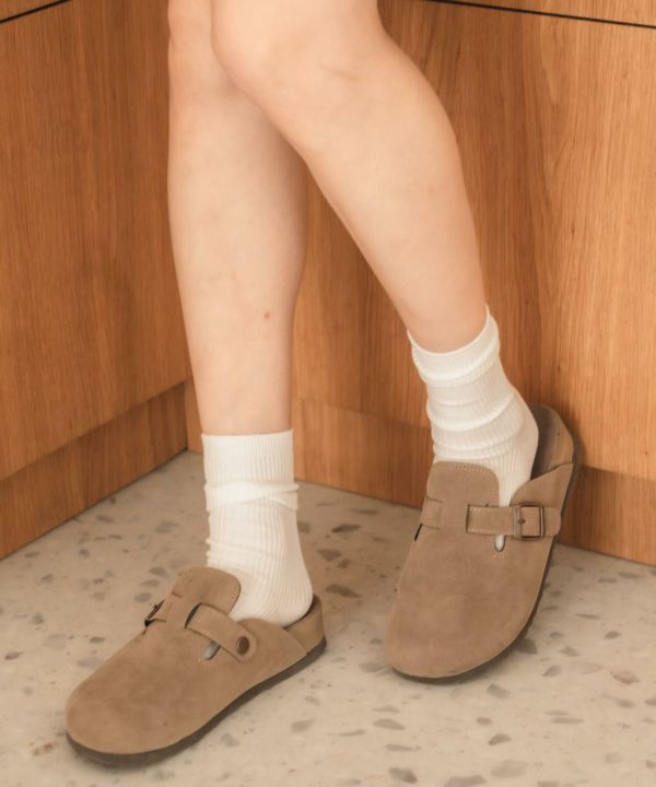 足なじみの良いコルクインソールを使用しており、着脱しやすいミュールタイプで着脱もらくちんです。