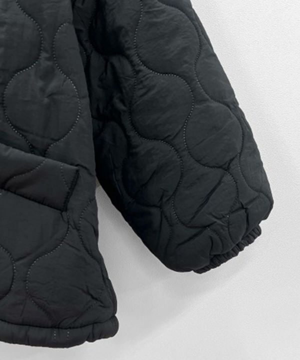 表地は、防風・保温性に優れたポリエステル、内側は柔らかく暖かみのあるシャギーボアを使用。キルティング加工を施しているので着ぶくれがしにくいのも嬉しいポイント。