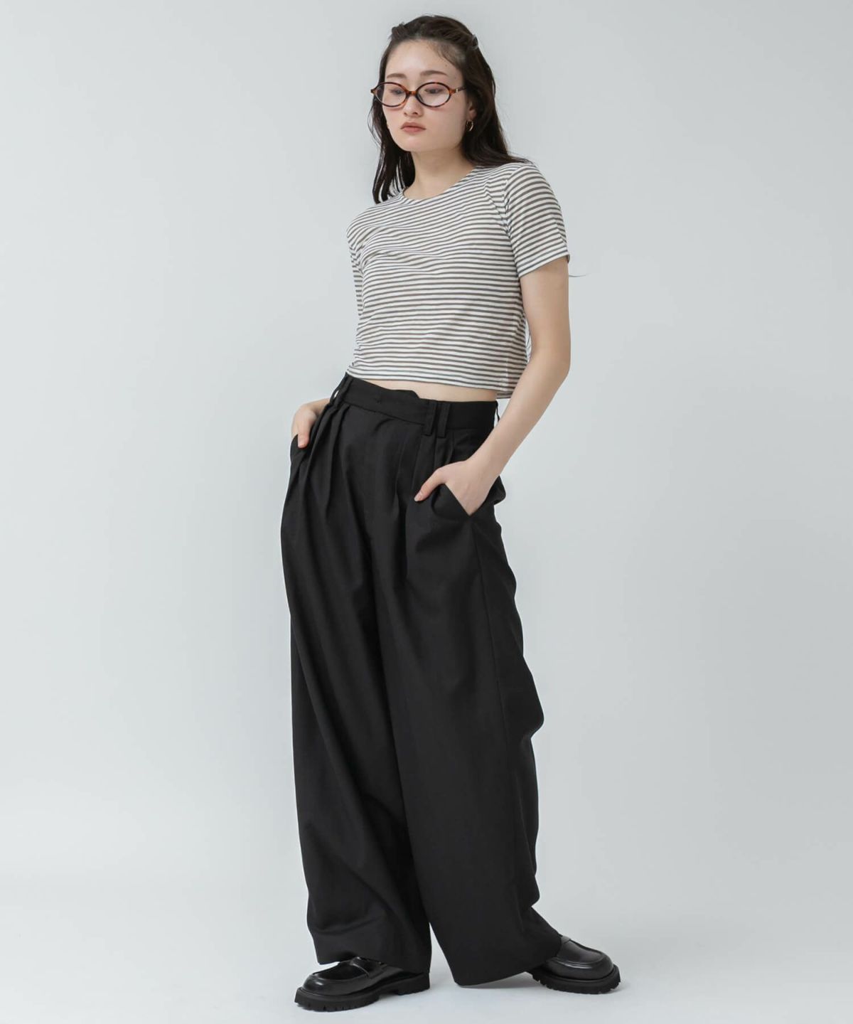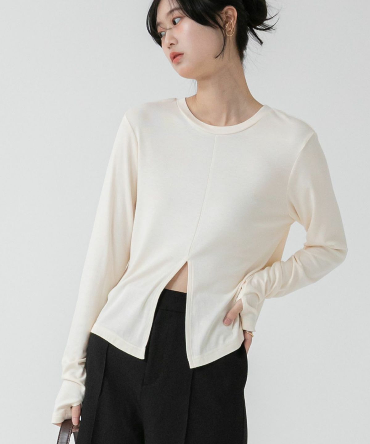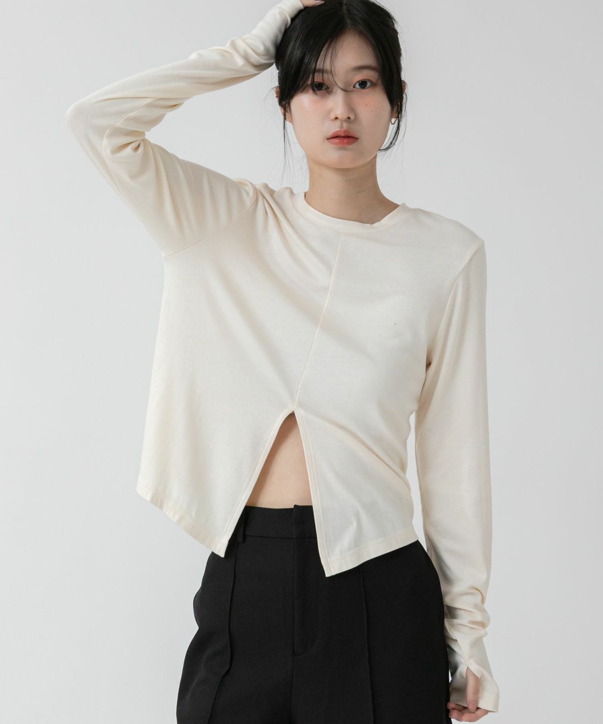 シンプルながらも表情豊かな2WAYスリットカットソー 【Nao Original】 2Way Slit Cutsew