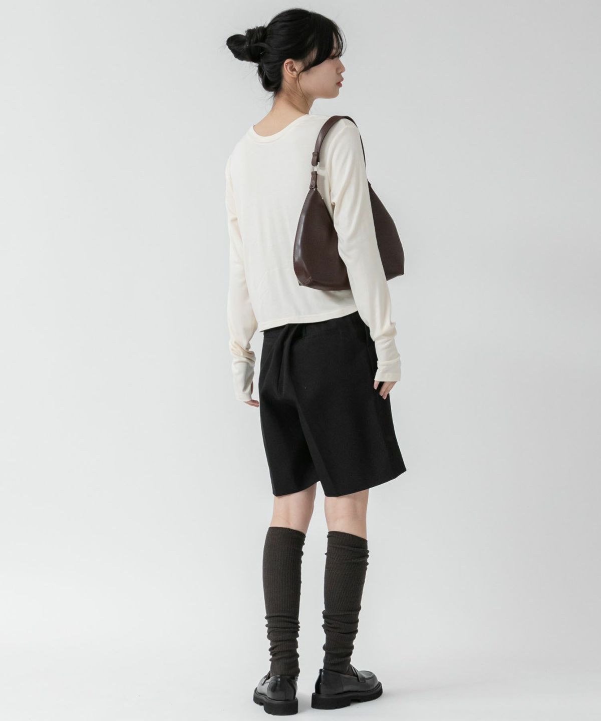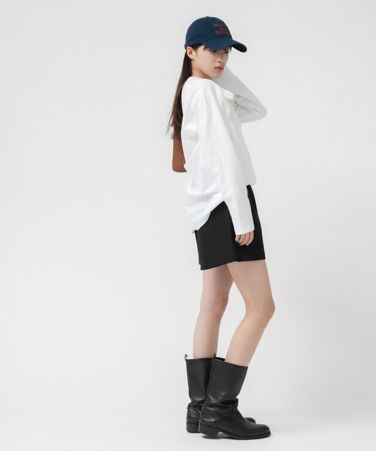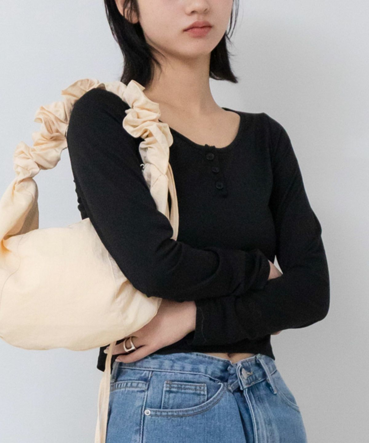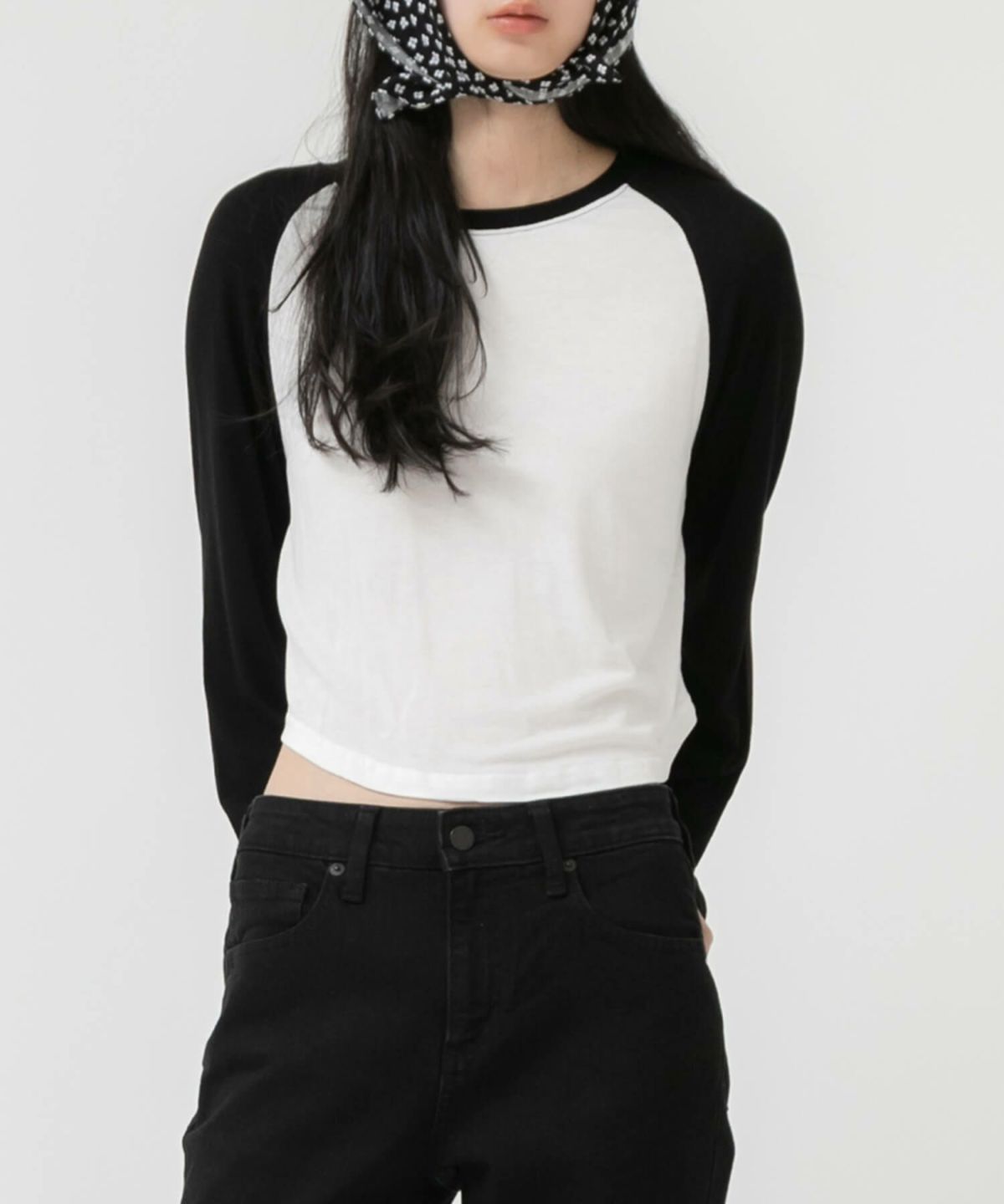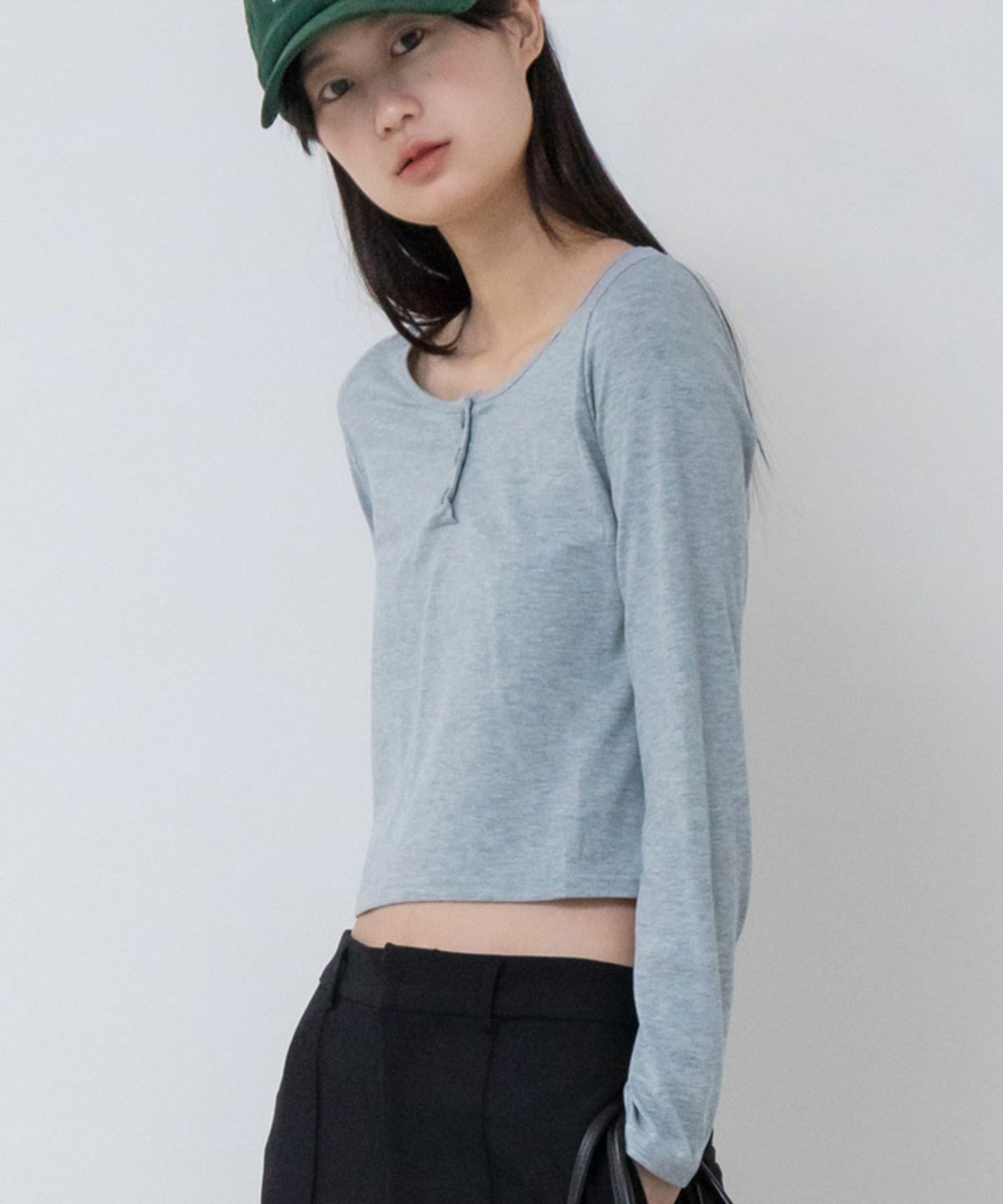 今っぽさが叶うクロップド丈とコンパクトなヘンリーネックカットソー Henry Neck Long T-Shirt