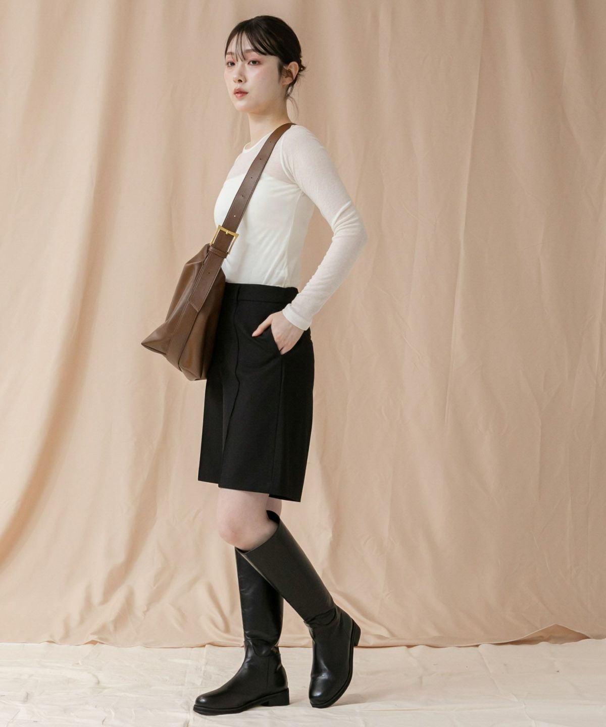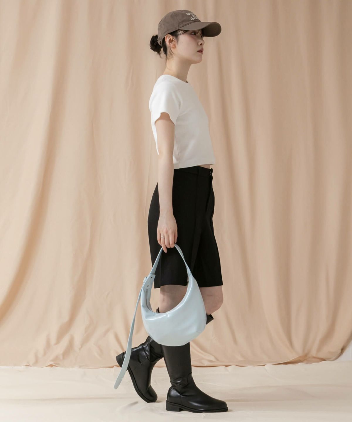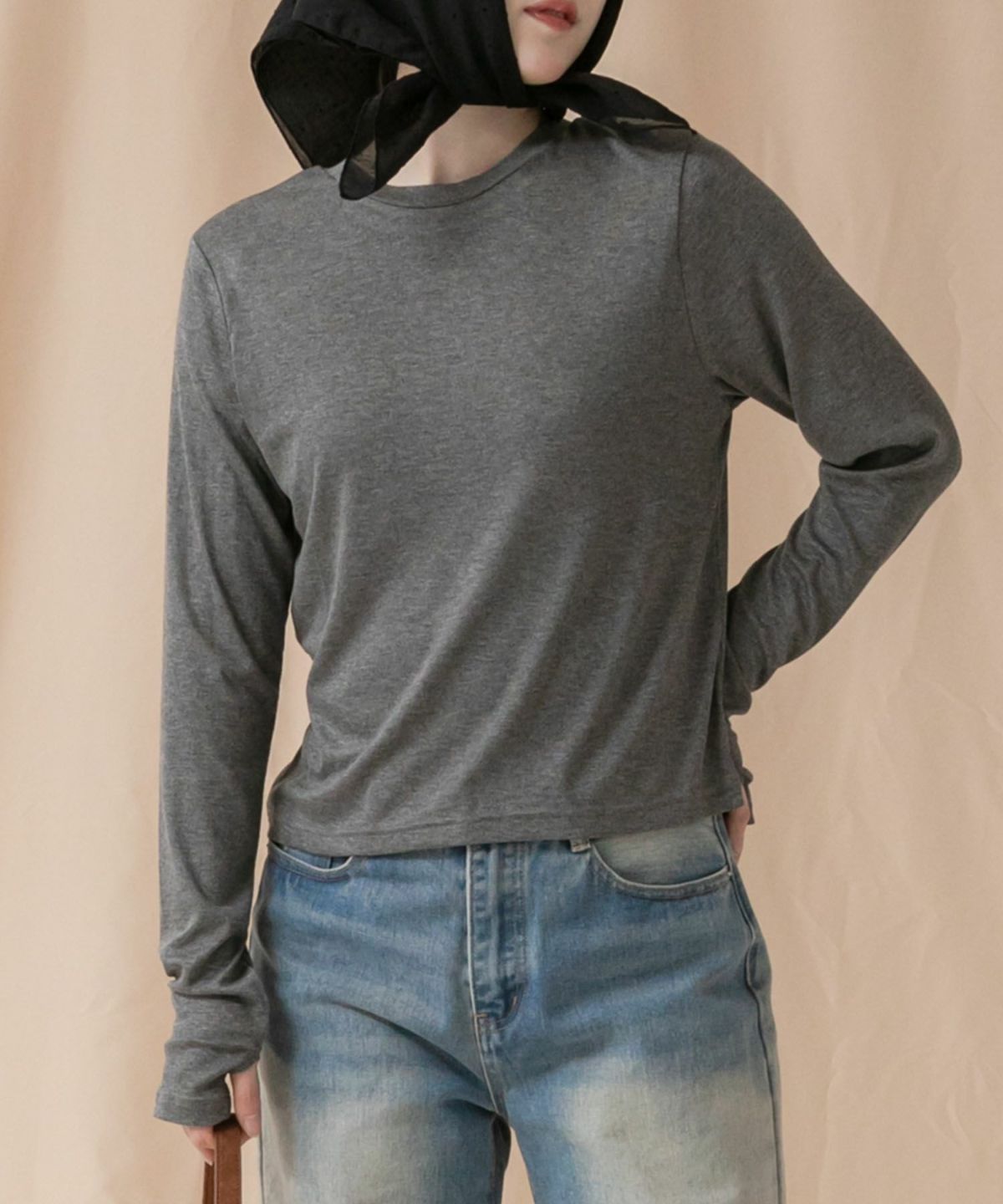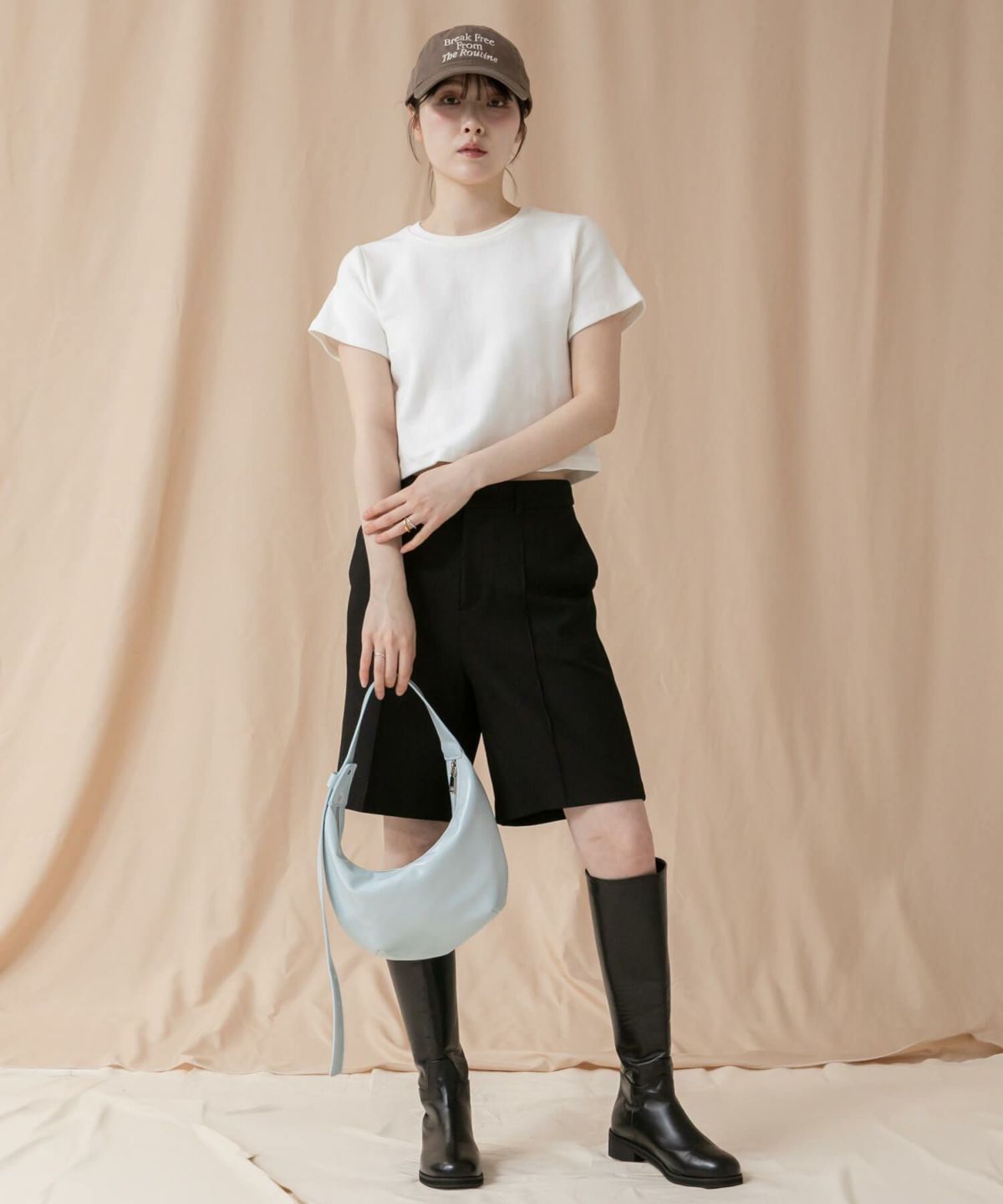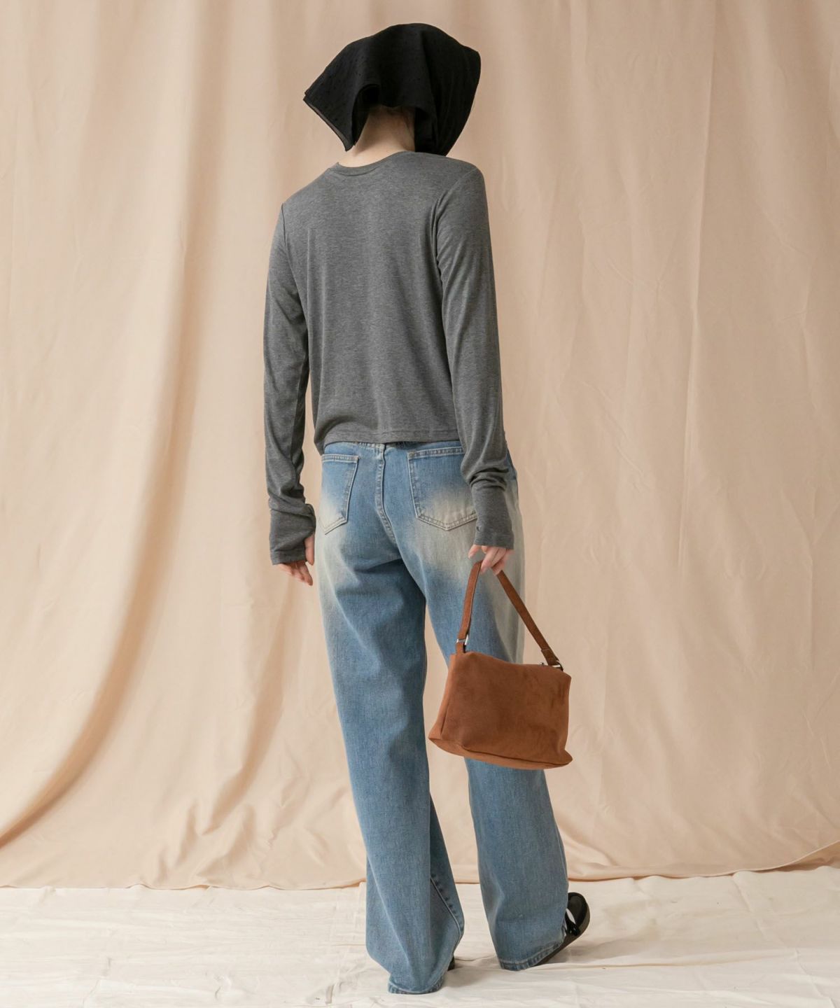 今っぽさが叶うクロップド丈とコンパクトなヘンリーネックカットソー Henry Neck Long T-Shirt