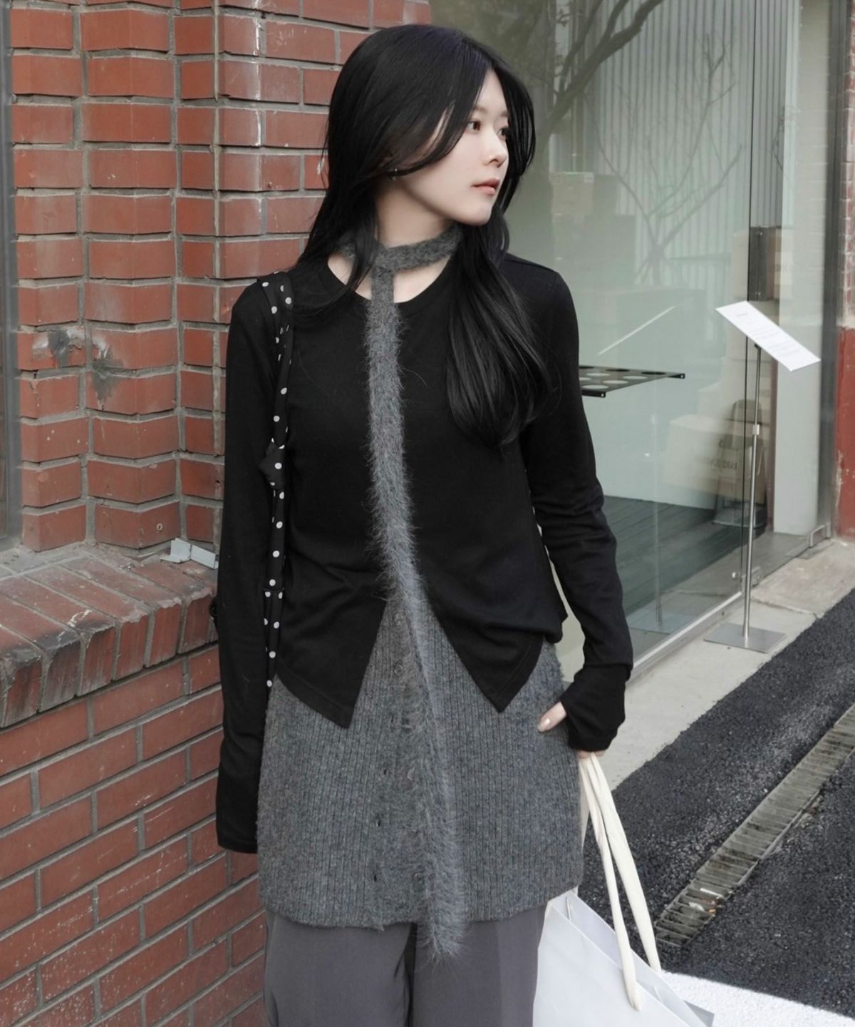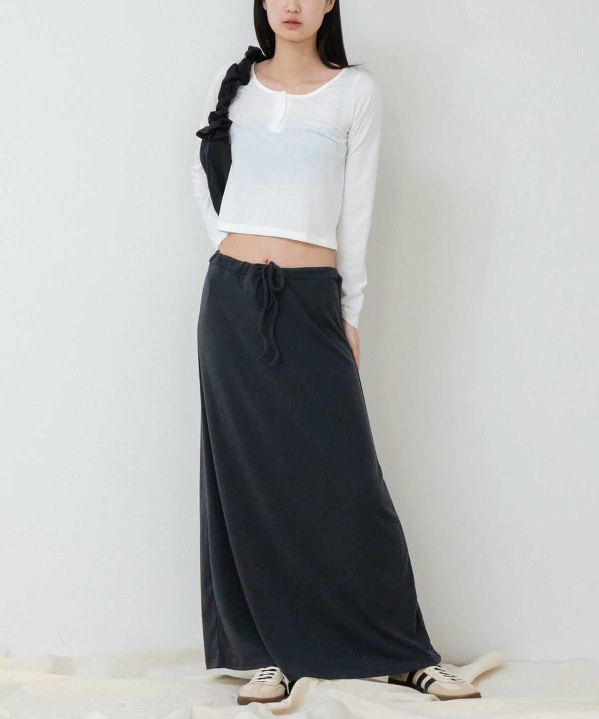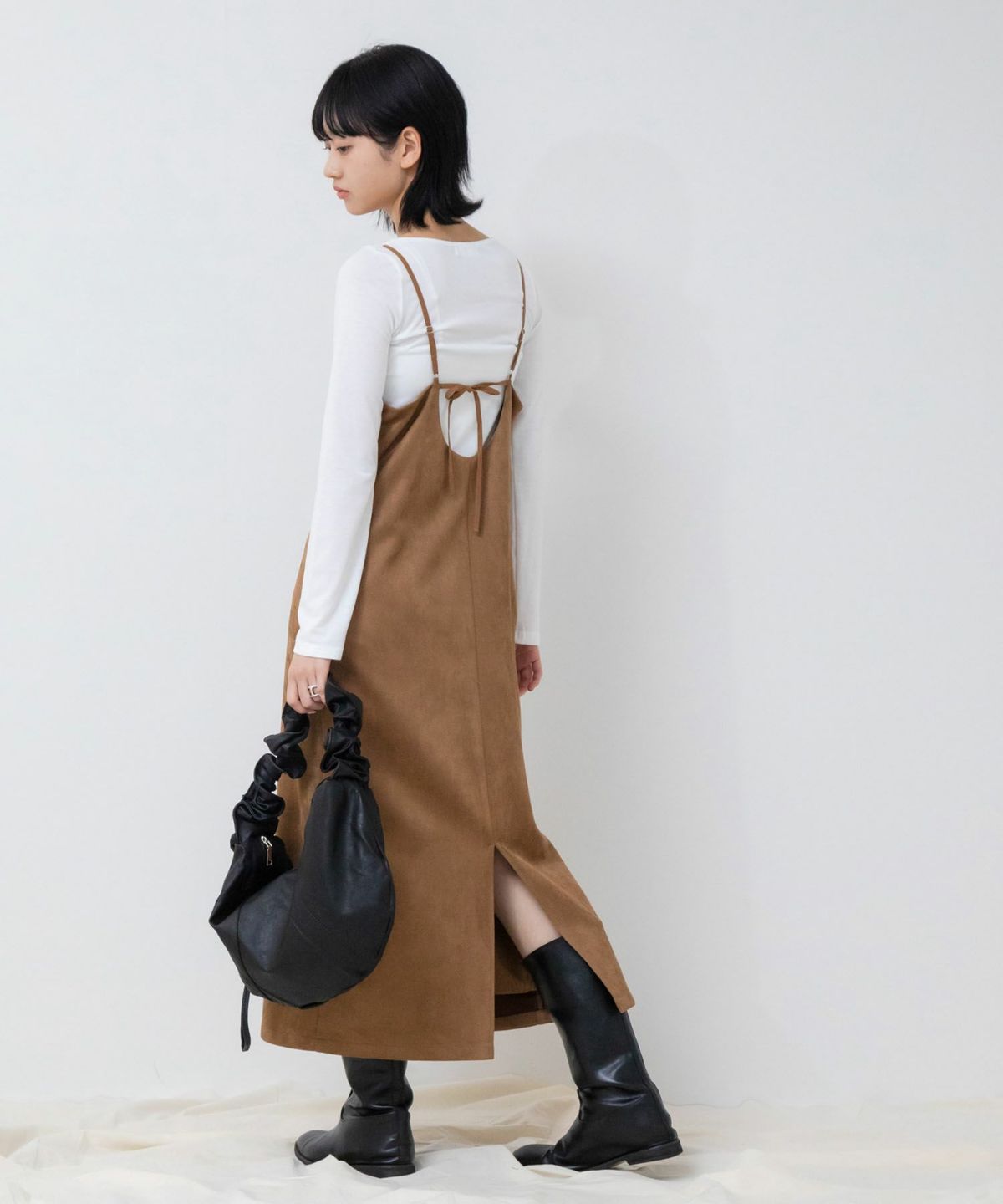 リブロングワンピース 【original】Rib Cutsew Back Shan Dress