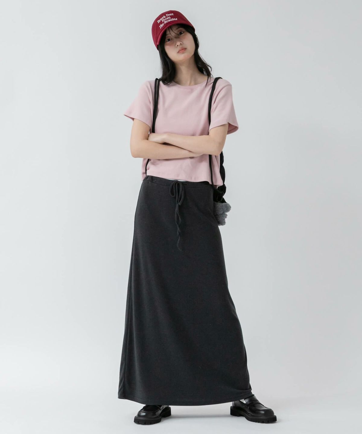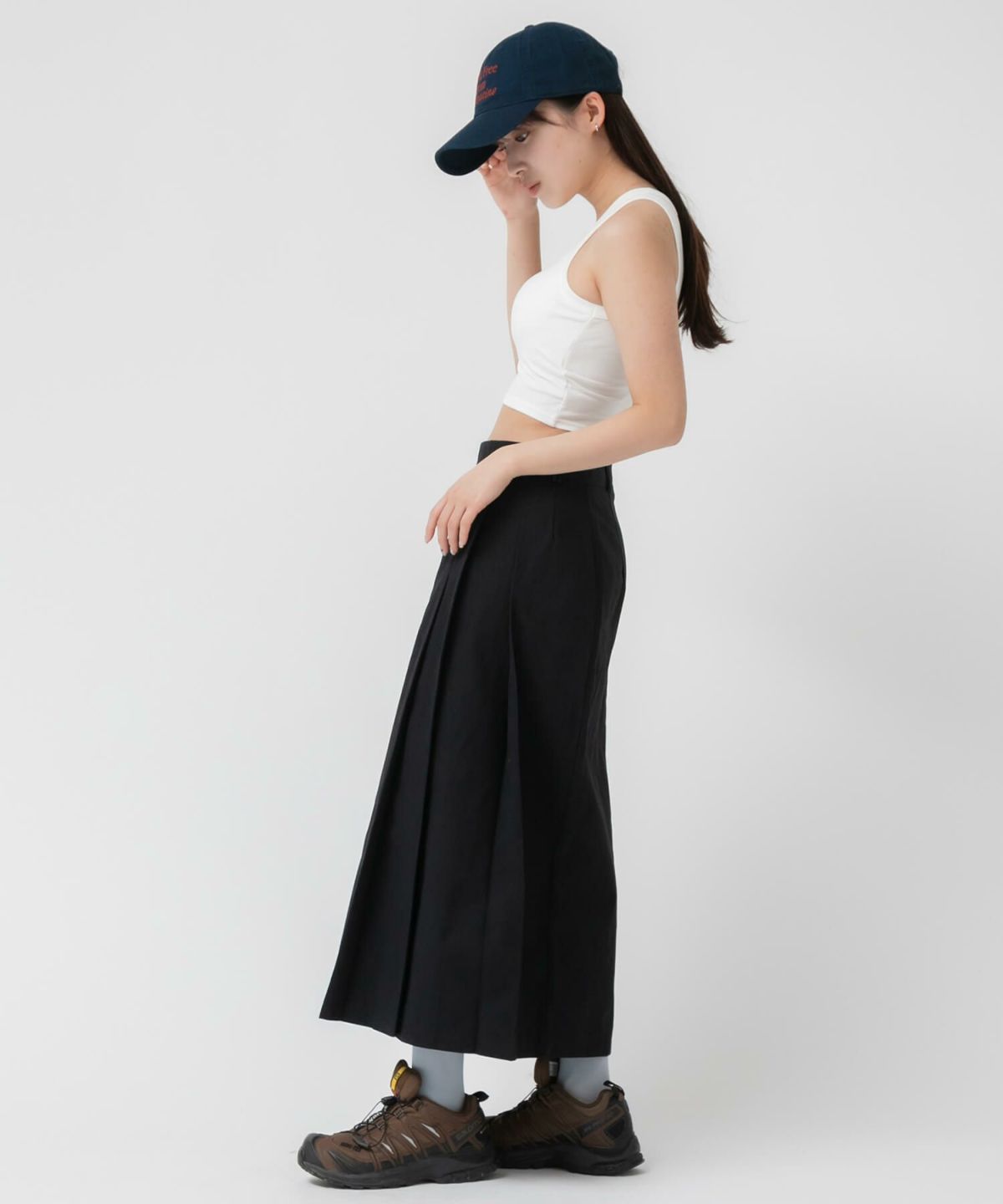 さりげないスリットがアクセント Slit Pleat Long Skirt