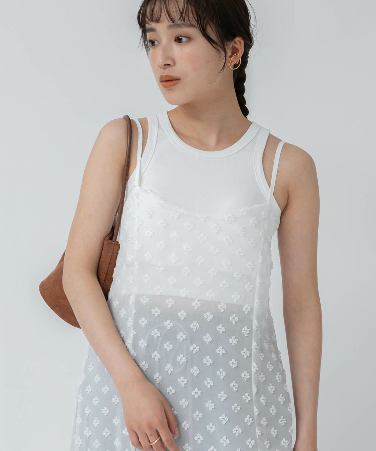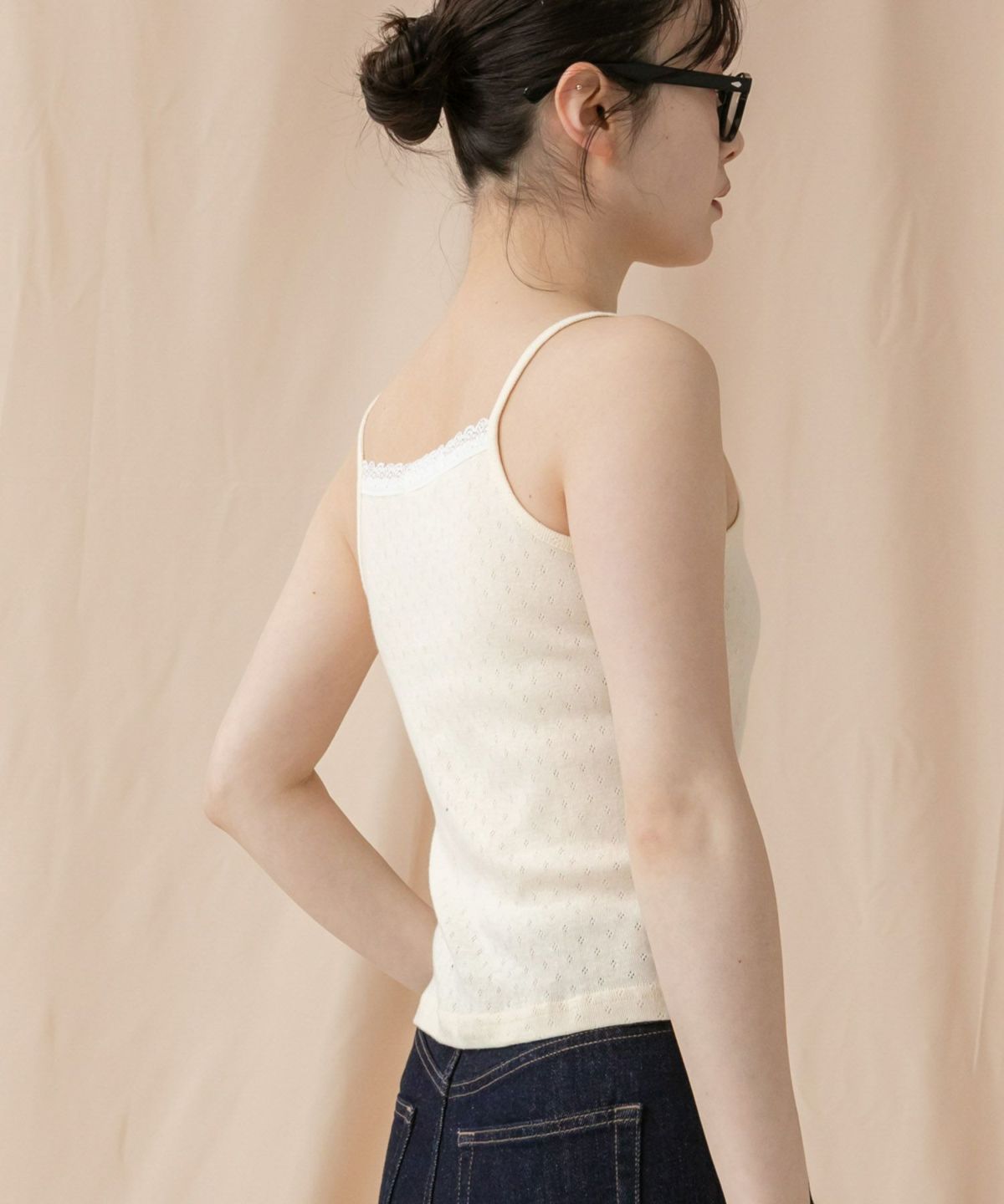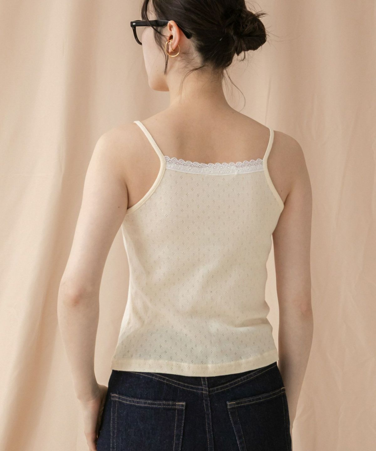 繊細なレースとフラワー刺繍のキャミソール Cotton Lace Tunic Camisole