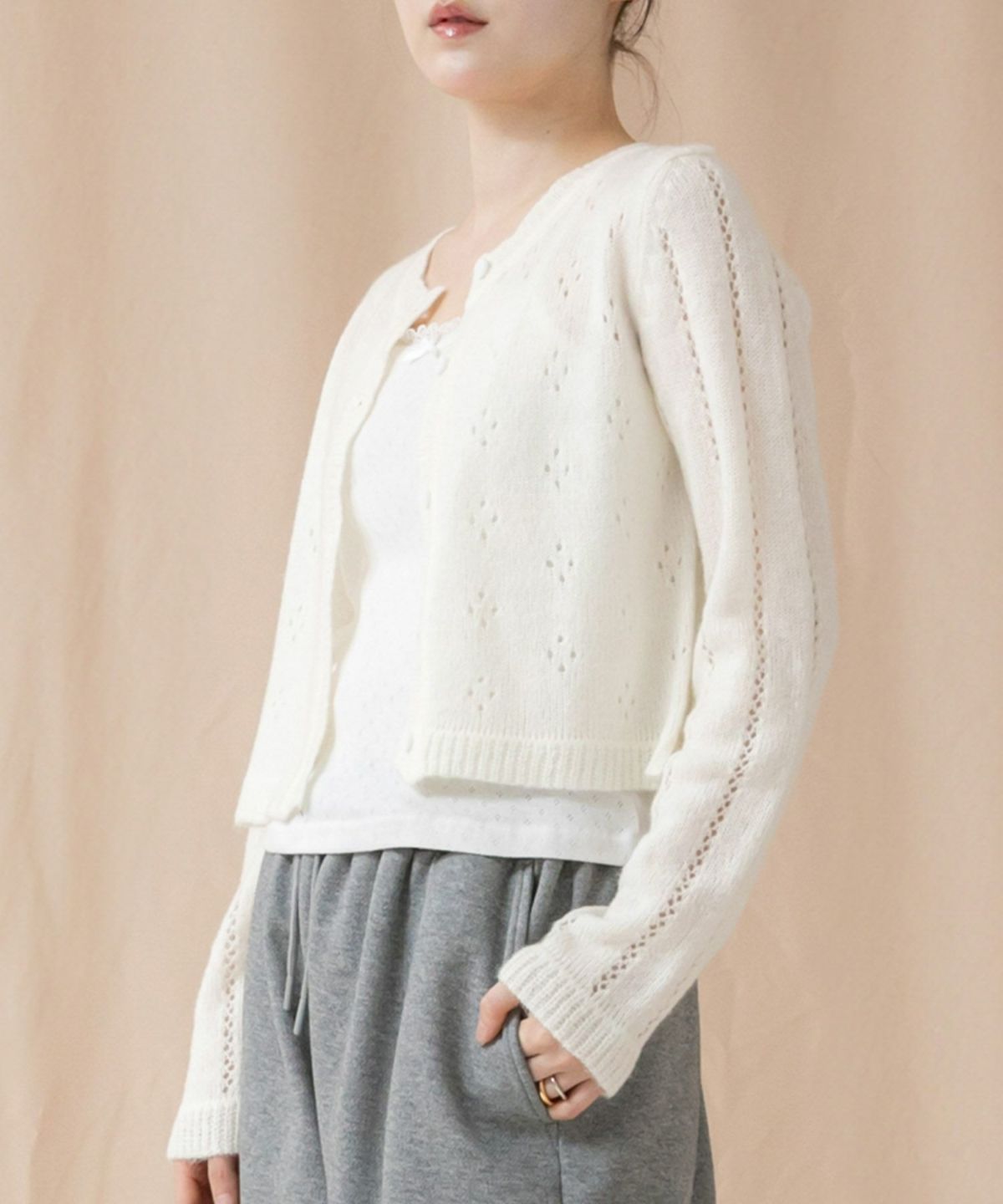 花柄のような透かし編みが大人ガーリーなカーディガン Flower Cutting Knitted Cardigan