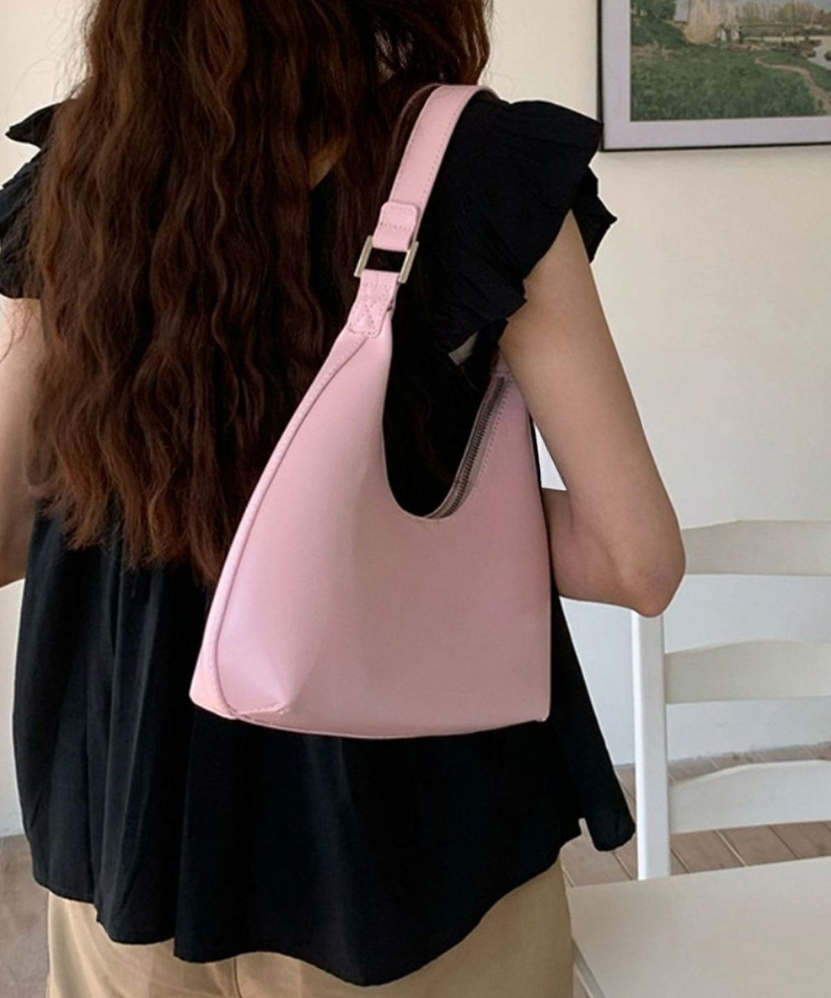 程よい張り感のあるナイロン素材のワンハンドルのショルダーバッグです One Handle Nylon Shoulder Bag