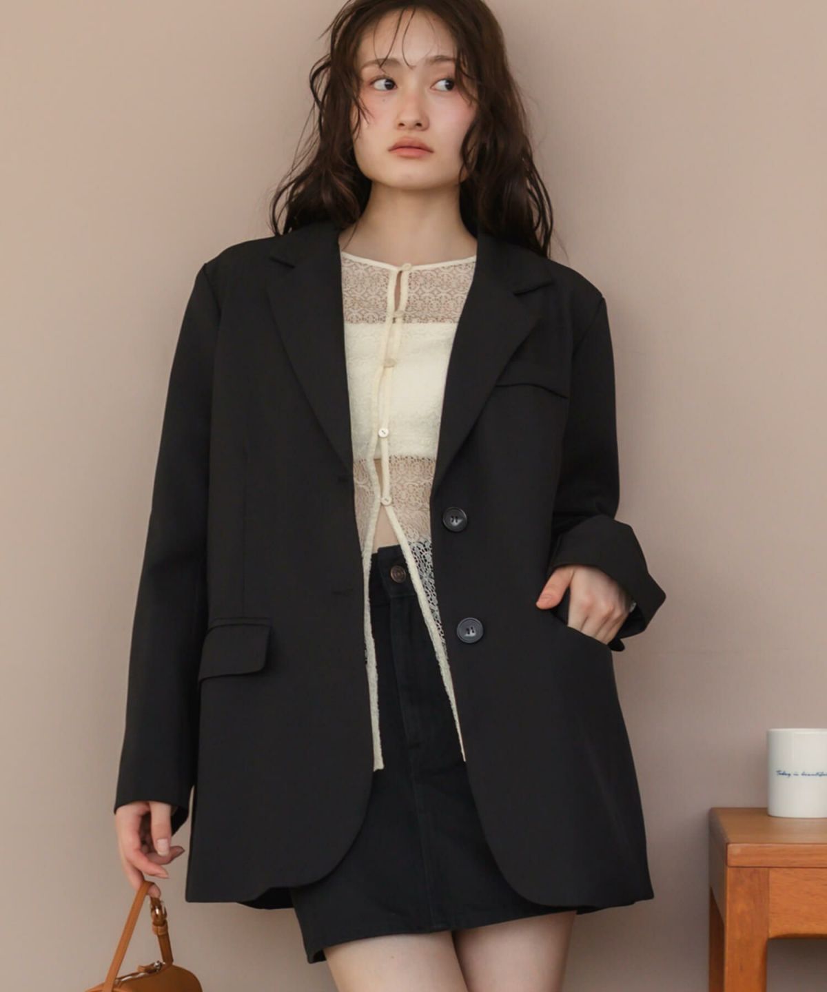 レディライクなシングルブレストのオーバーサイズジャケット Oversized Basic Tailored Jacket