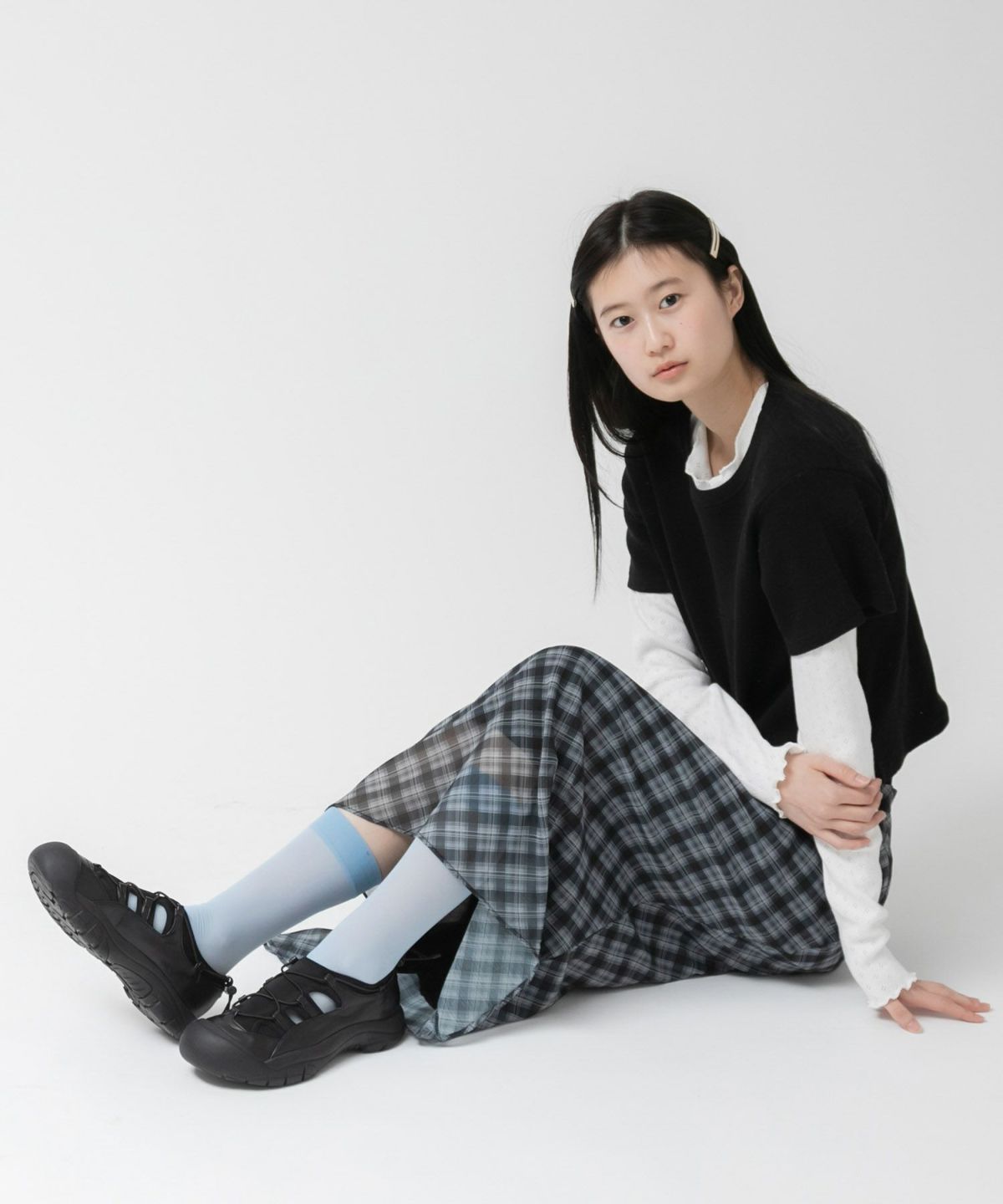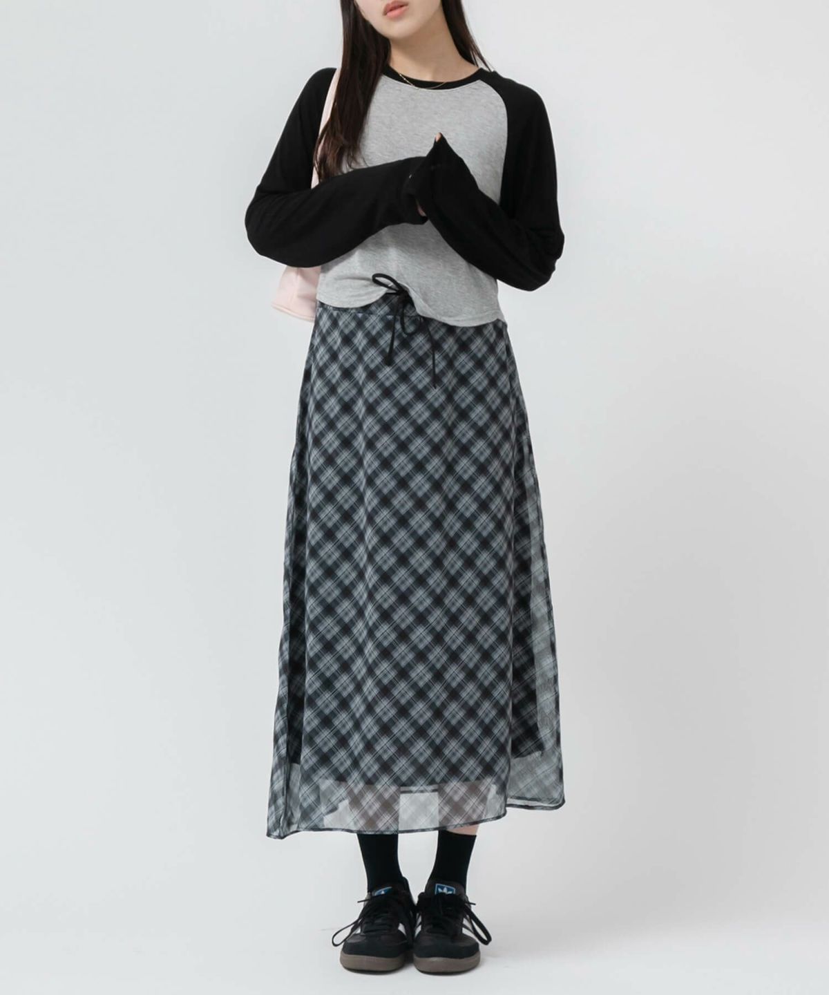 ふんわりとしたシフォン素材のシアーチェックスカート Sheer Chiffon Check Skirt