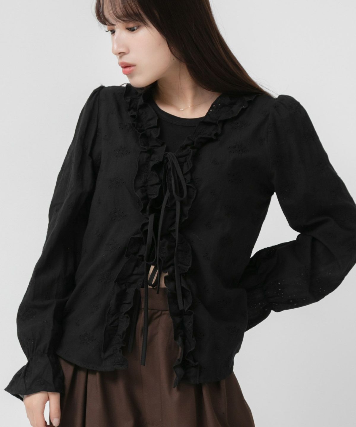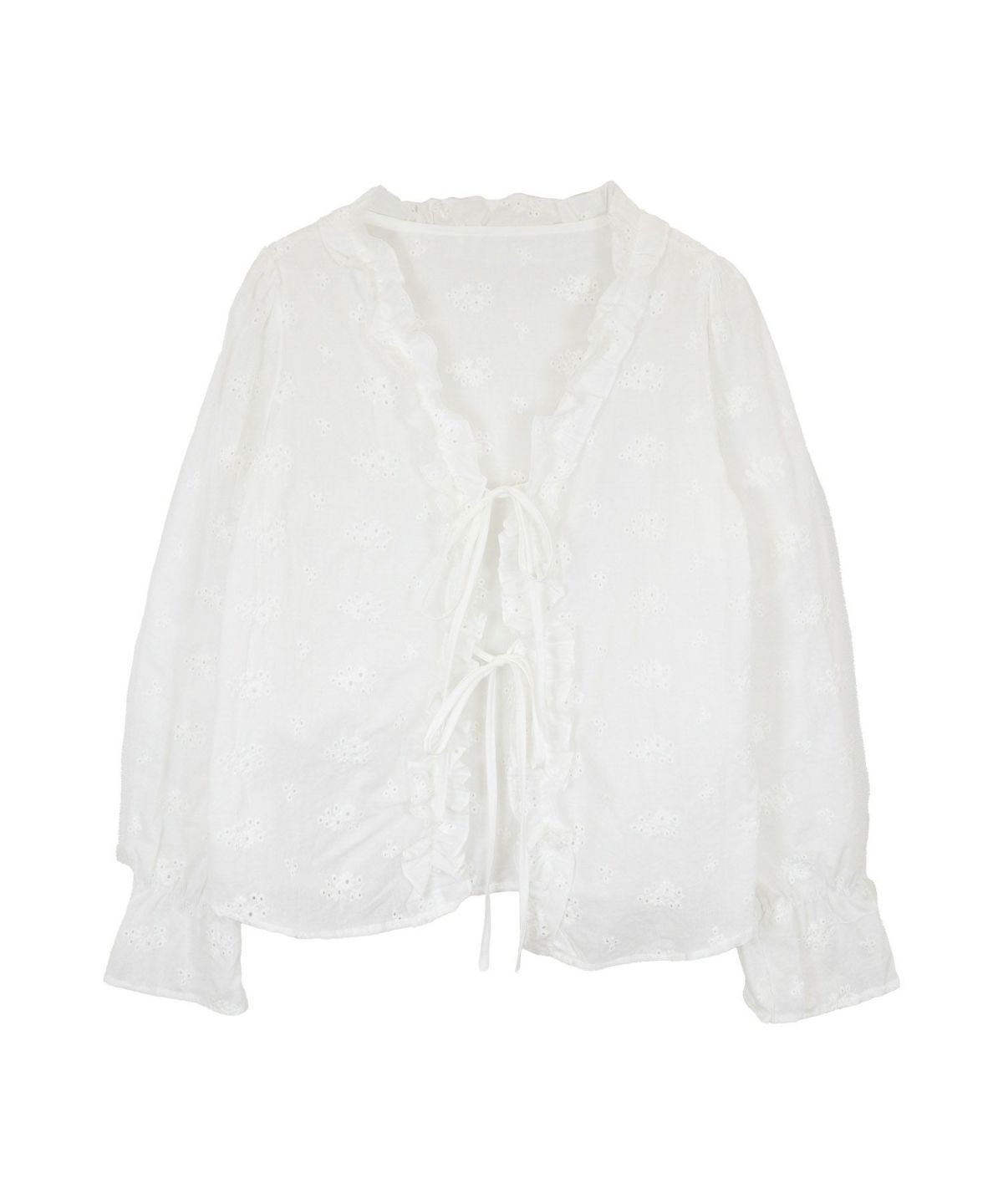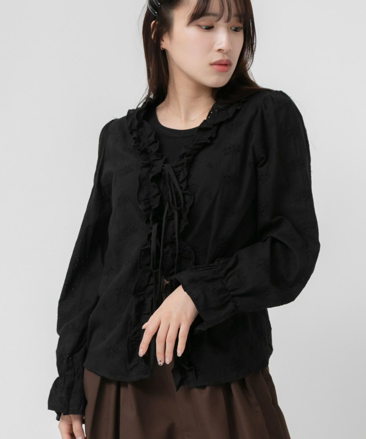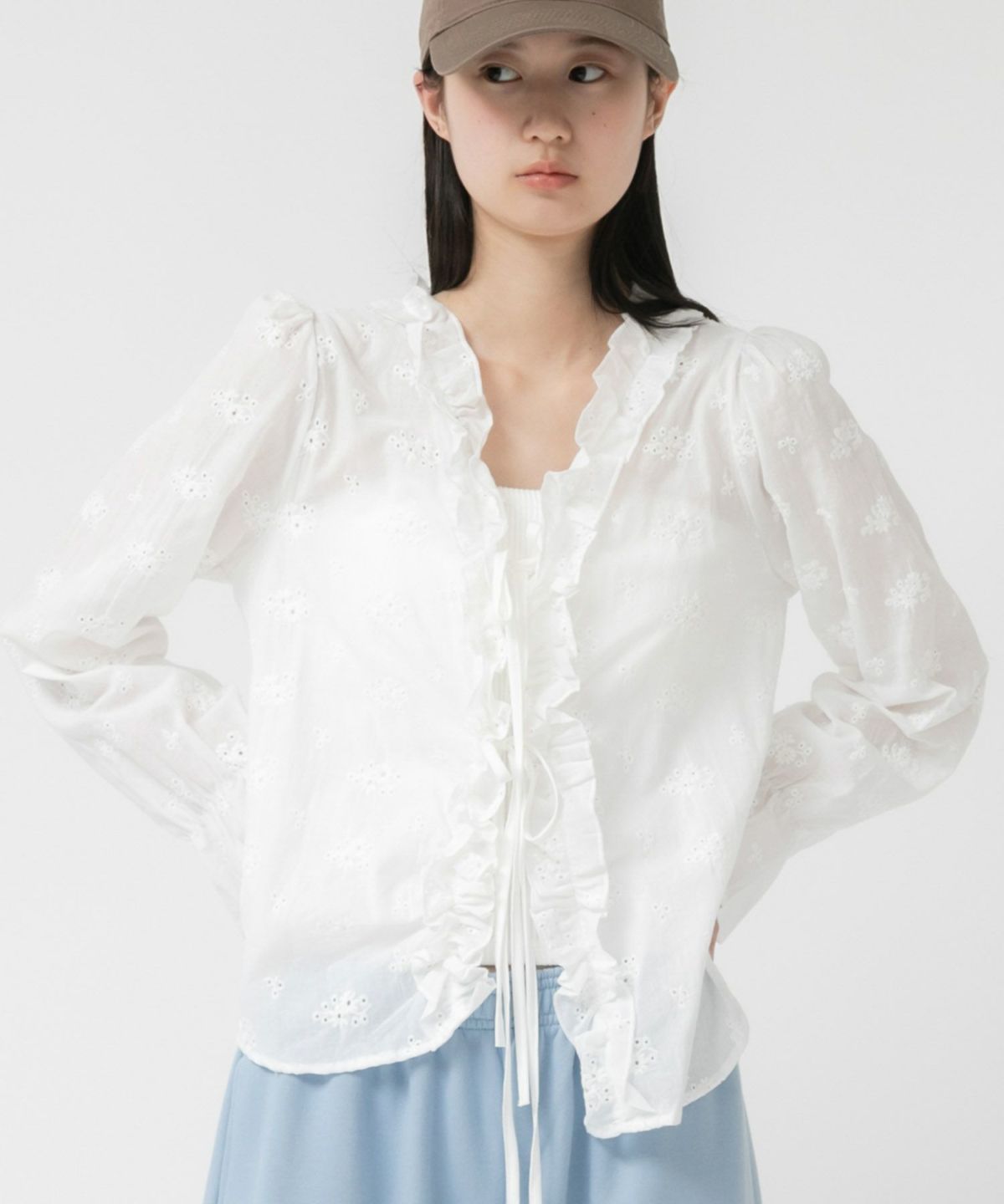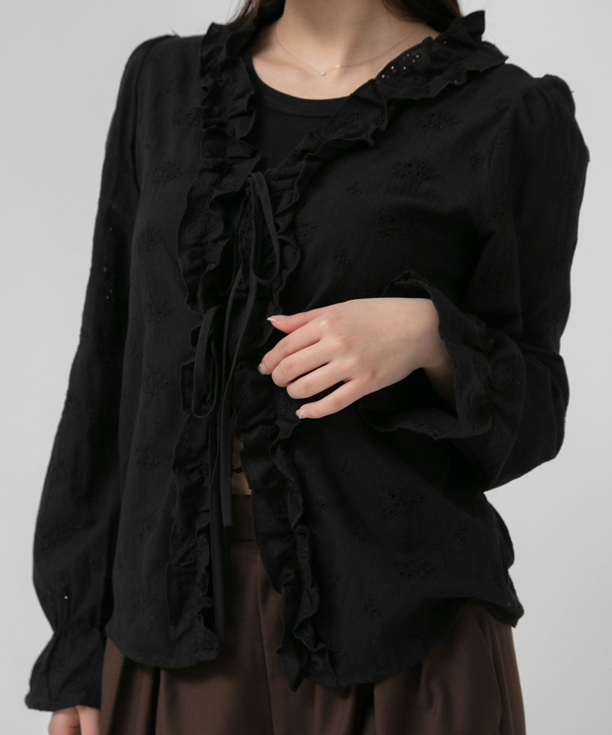 フェミニンな刺繍レースブラウス Lace Embroidery ribbon Blouse