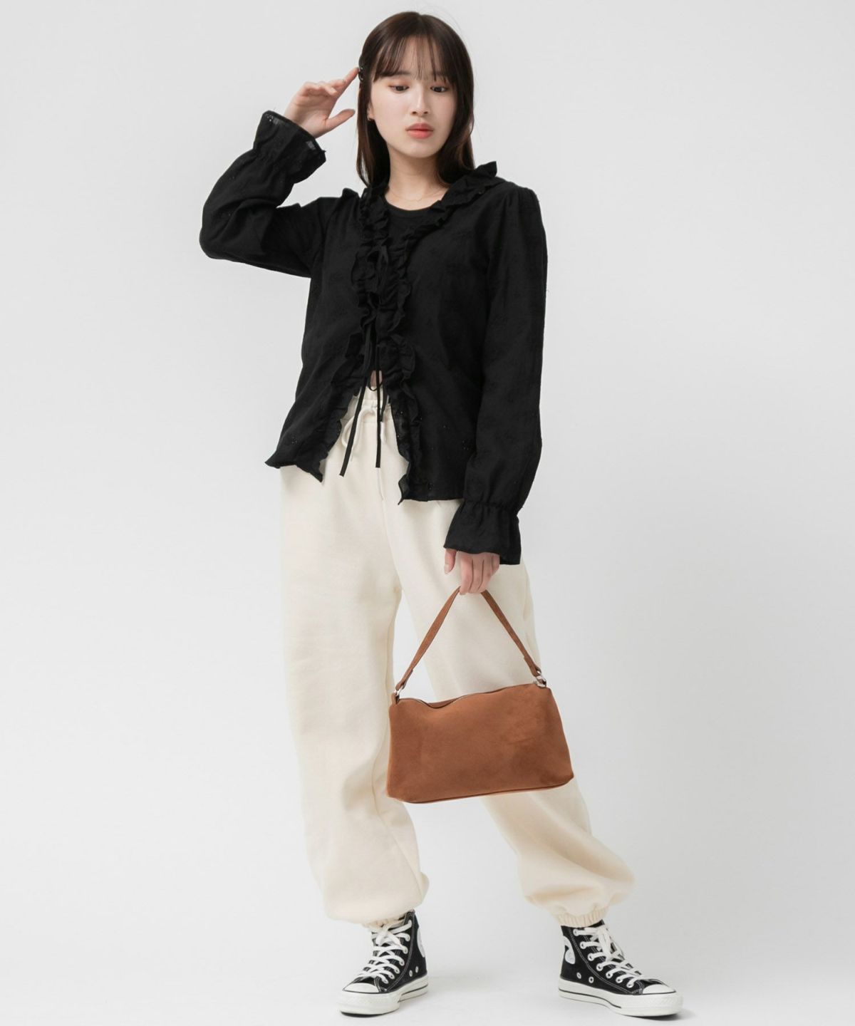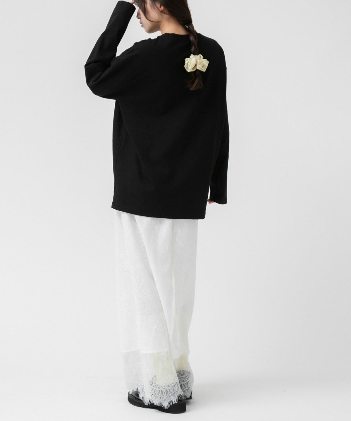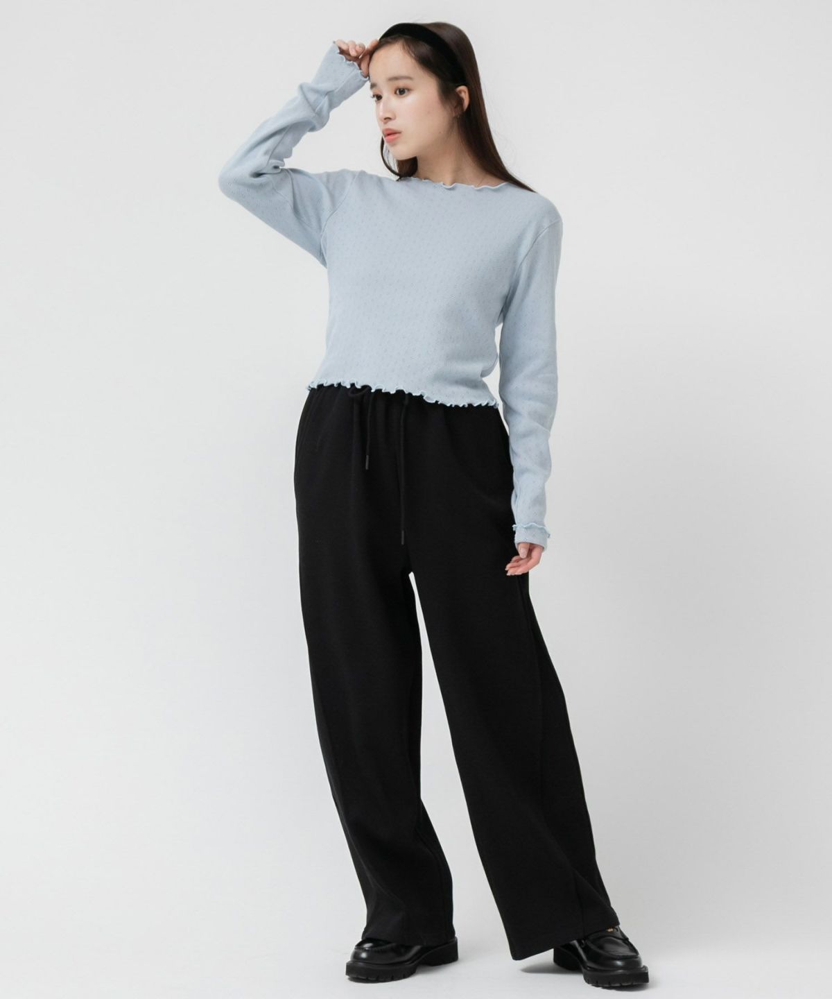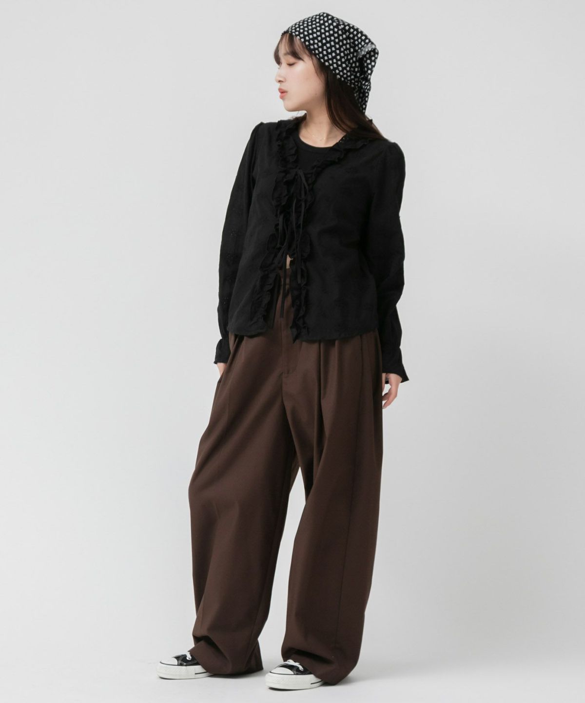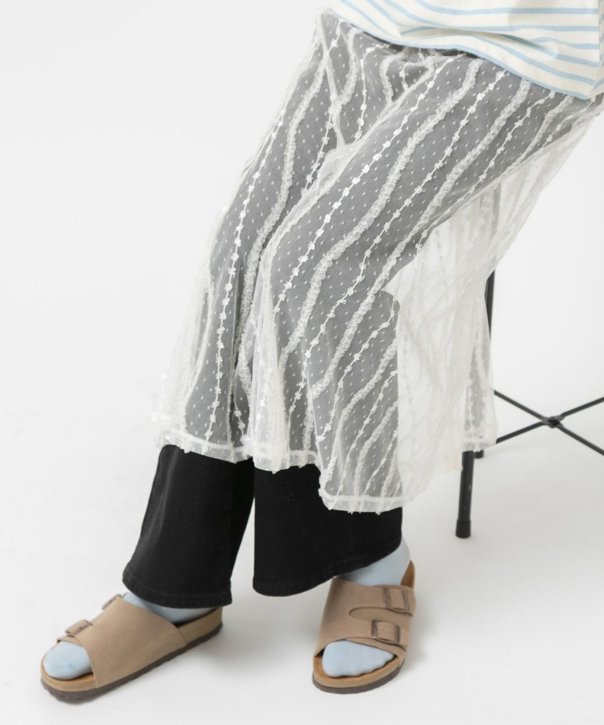 立体的なフラワー刺繍のワイドパンツ Flower Jacquard Easy Pants