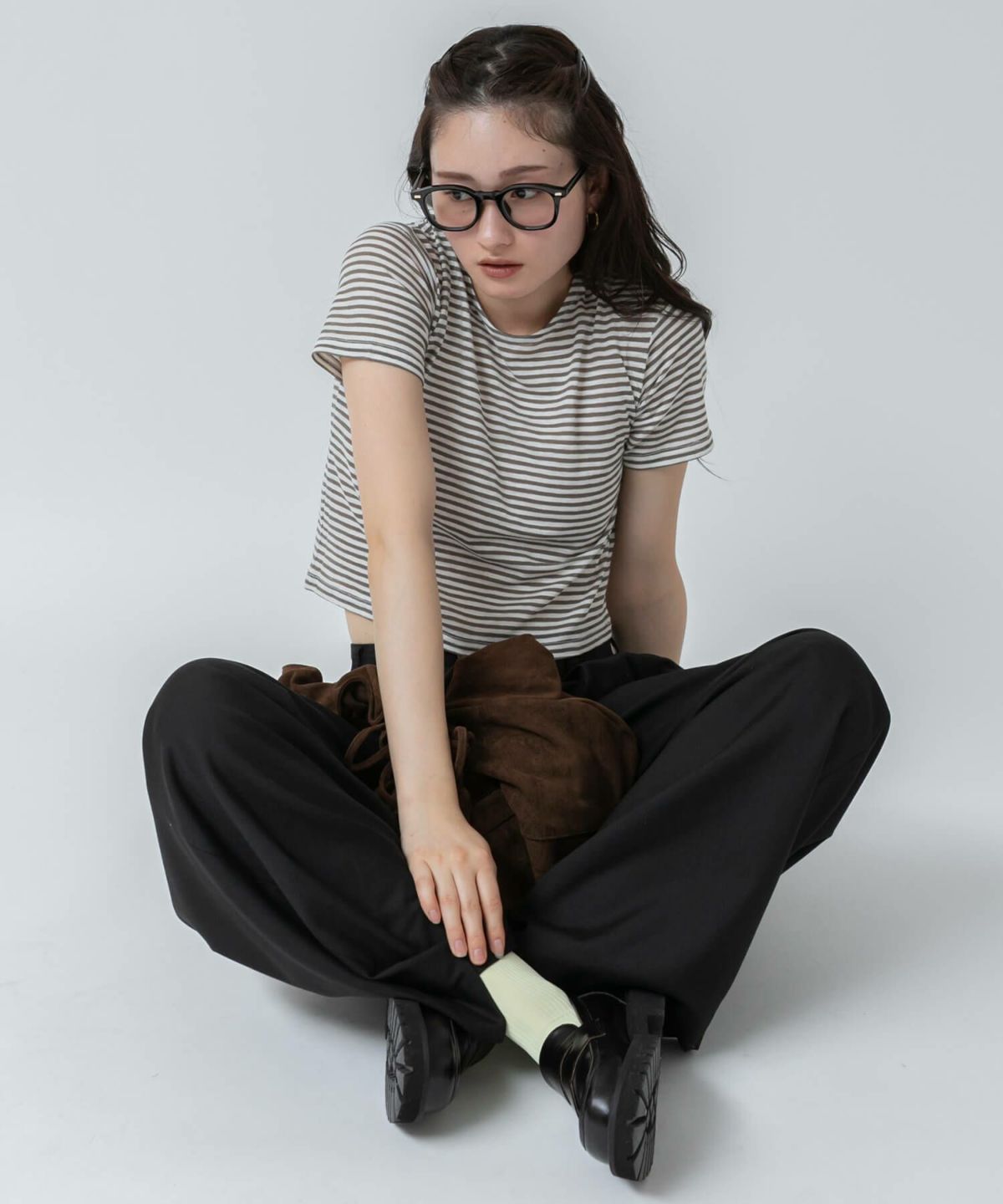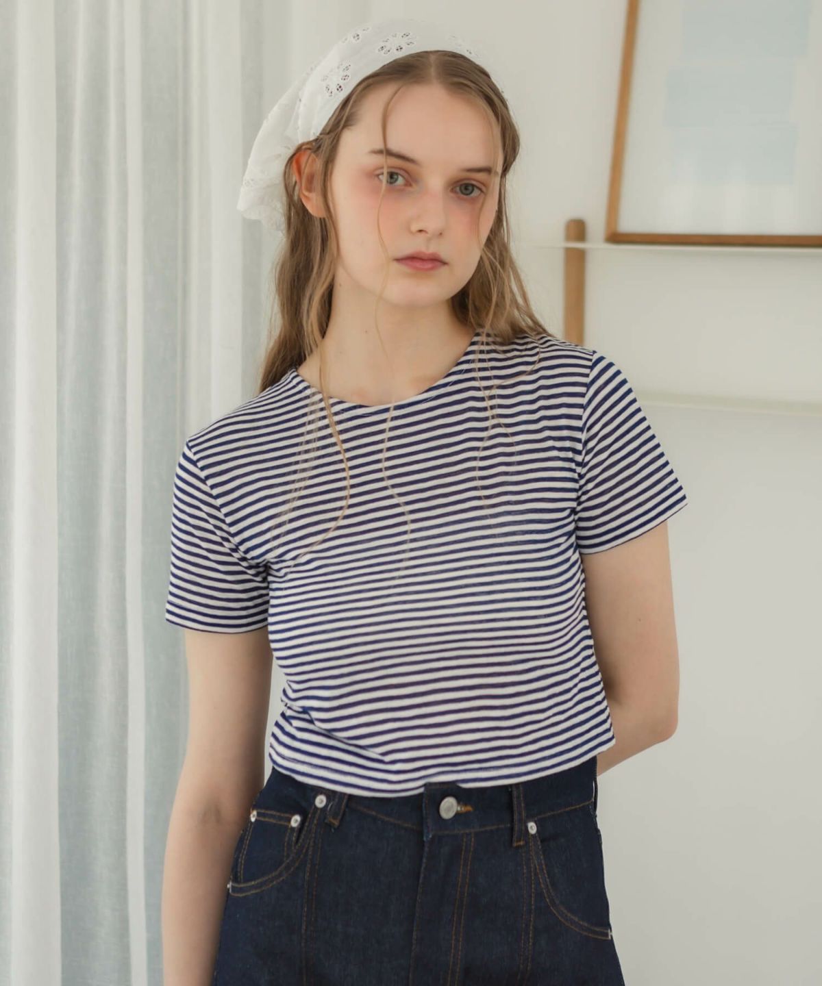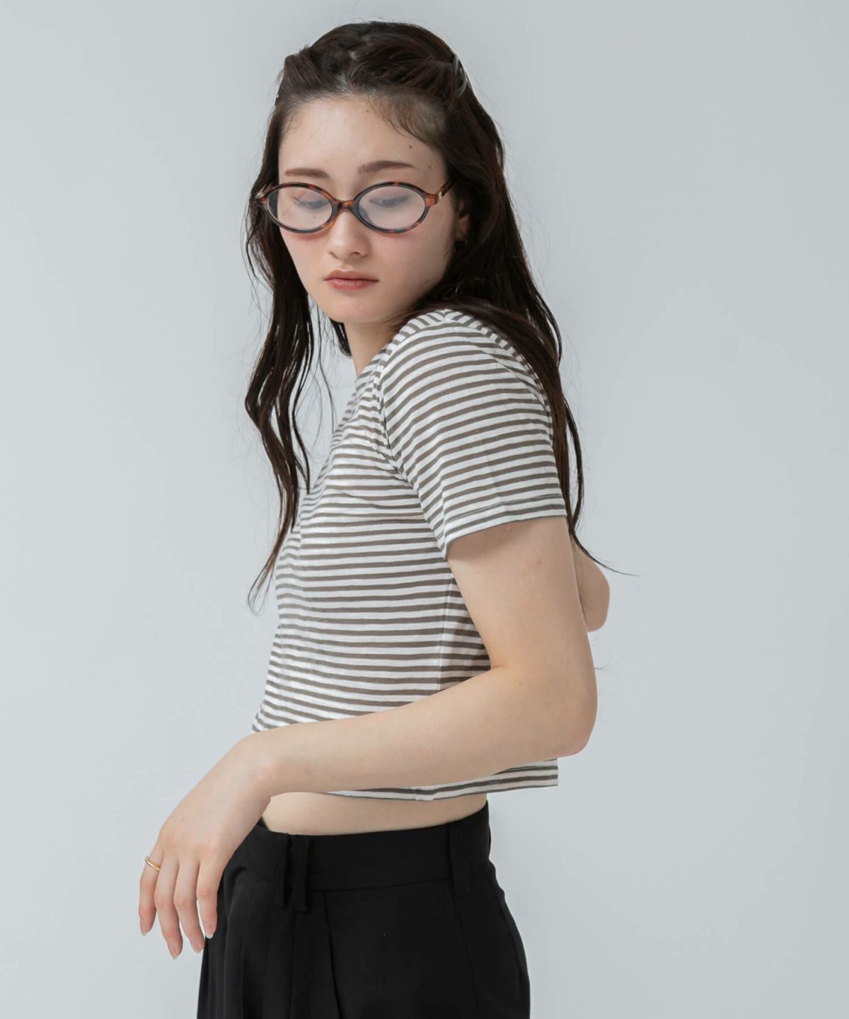 毎日に馴染むボーダーT Sheer Strip Short T-Shirt