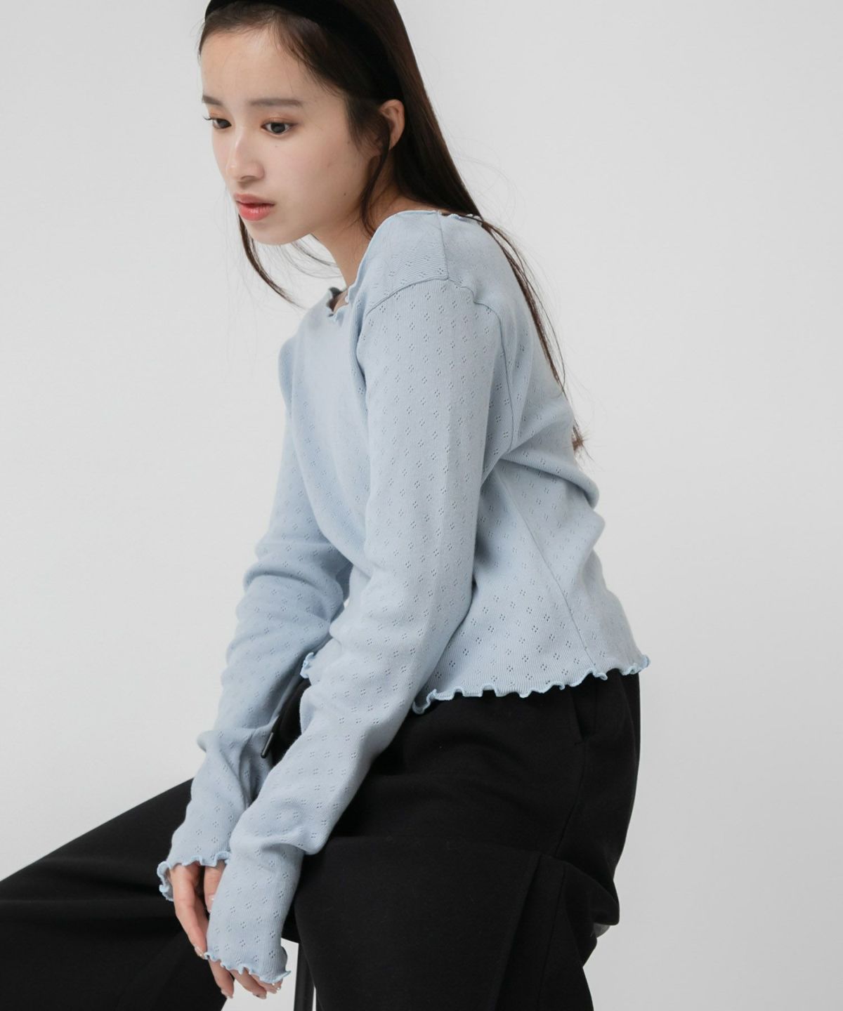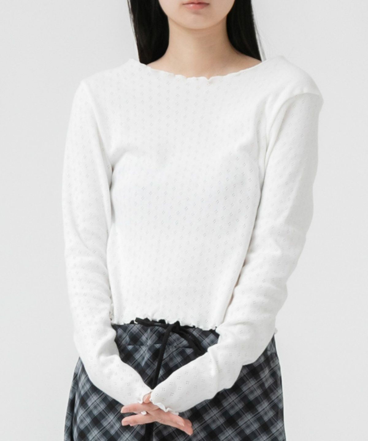 メローのフリル感が可愛いガーリーなカットソー Punching Ruffle Mellow Cutsew