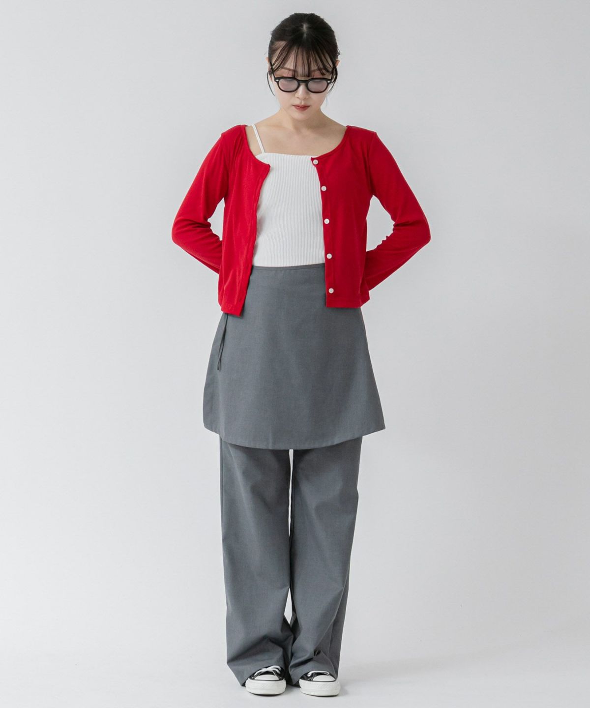 トレンド感のあるレイヤードスタイルを楽しめる、ラップスカート2WAYレイヤードパンツ Wrap Skirt Layered Pants