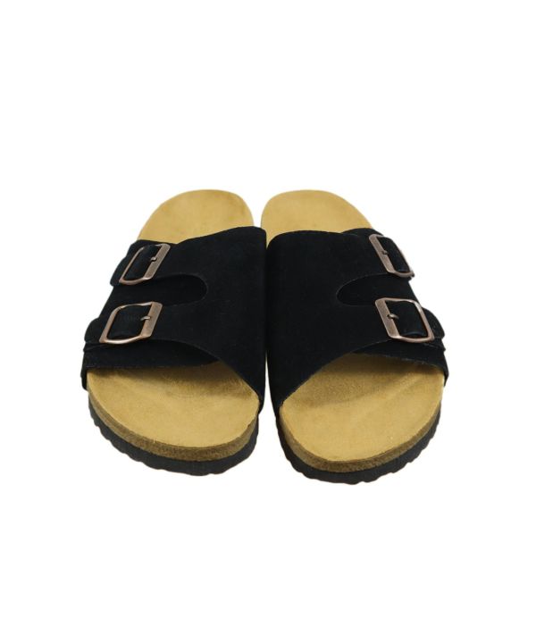 甲の高さや足幅はベルト部分で調節が可能なため、足の形を選ばず、幅広い方に着用いただけます。ソール部分はコルクのような素材でカジュアルさをプラス。