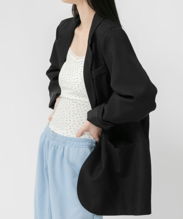 ゆったりとしたシルエットが特徴のテーラードジャケット。