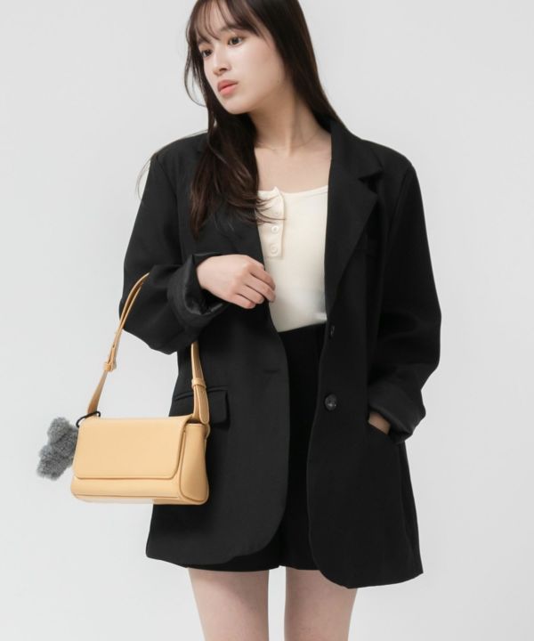 クラシックなラペルデザインとシングルボタンが上品な雰囲気を演出します。