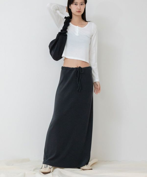 ナロースカートなので、ゆったりとしたスウェットやニットとの合わせがおすすめです。