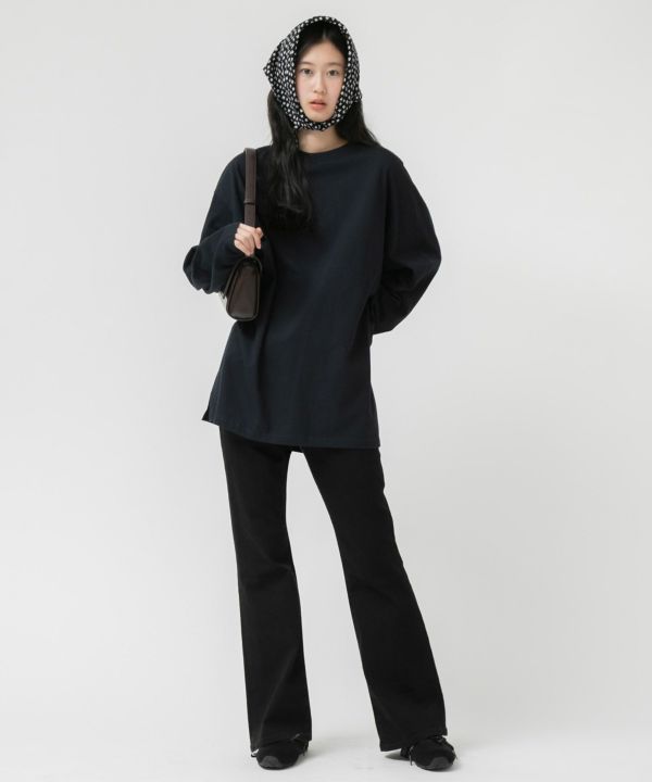 1枚でサラッと着るのはもちろん、ビッグシルエットながら程よくネックが詰まっているので冬場はスウェットやニットを合わせて首元からロンTを覗かせるレイヤードスタイルもおすすめです。