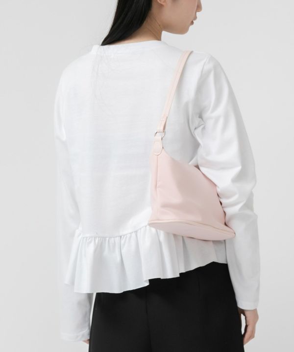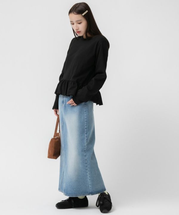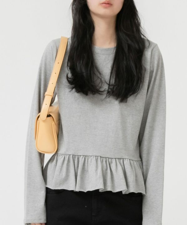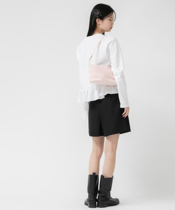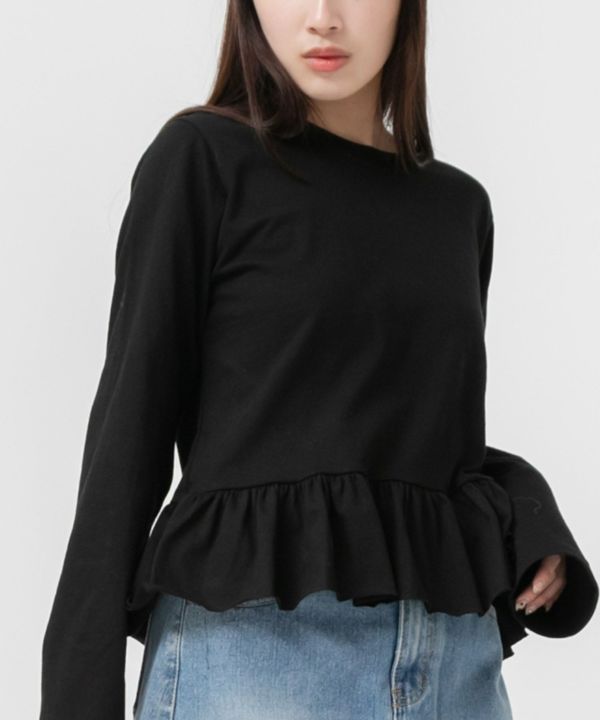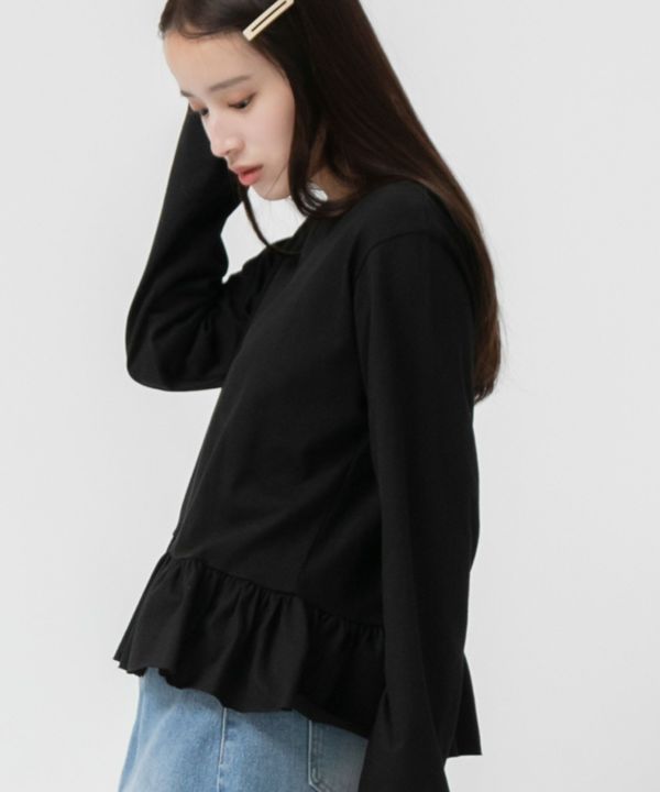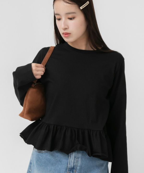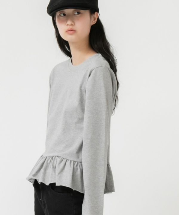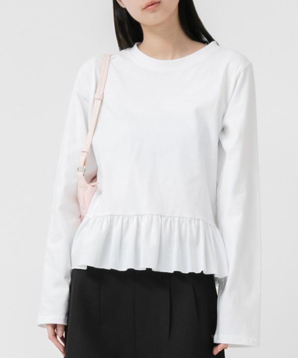 立体的なAラインシルエットに裾の切り替えからフワッと広がるフリルがポイント。1枚でもインナーとしても楽しめる、シンプルながらも華やかな1枚。程よくフィットしながら大人の可愛さを演出する裾フリルTシャツです。