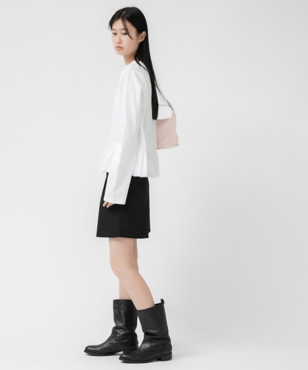 1枚でサラッと着るのはもちろん、カーディガンやニット、スウェットにレイヤードがおすすめ◎腰回りをさりげなくカバーしてくれるのでスタイルアップ効果も期待できます。カラーは定番のブラックとアイボリーの2色をご用意しています。