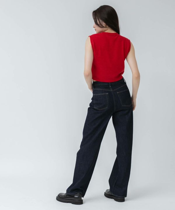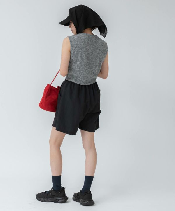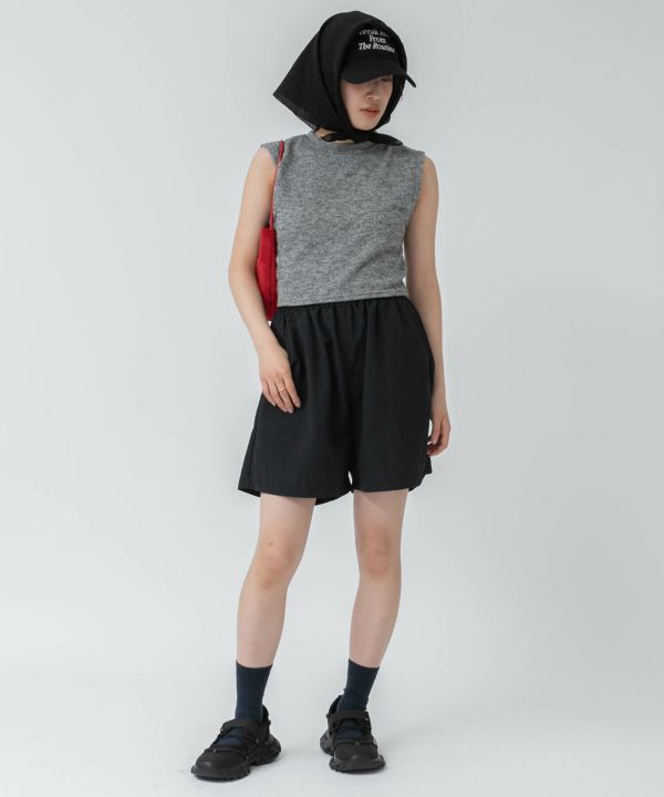 シンプルながらも程よい存在感のあるクロップド丈のタンクトップ。