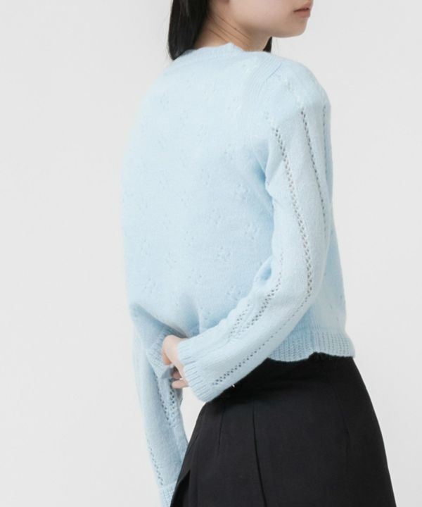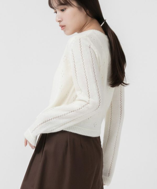 花柄のような透かし編みが大人ガーリーなカーディガン Flower Cutting Knitted Cardigan