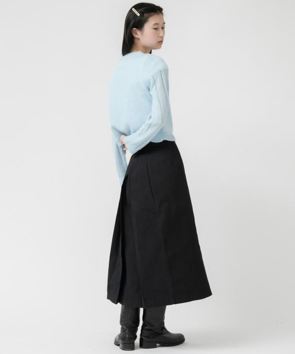 前立てのスカラップや透かし柄がヴィンテージライクなムードの柄ニット。