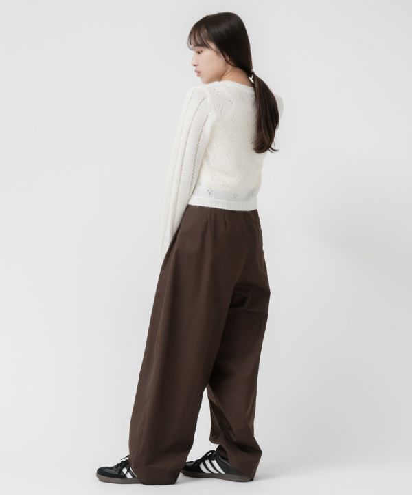 コンパクトなシルエットなのでボトムスはボリュームのあるタックパンツやワイドパンツとの相性が抜群◎