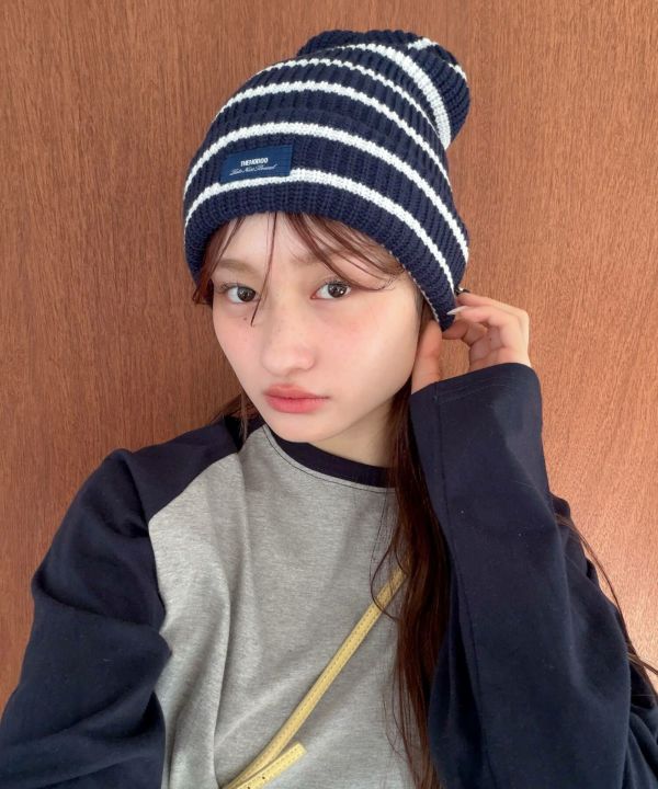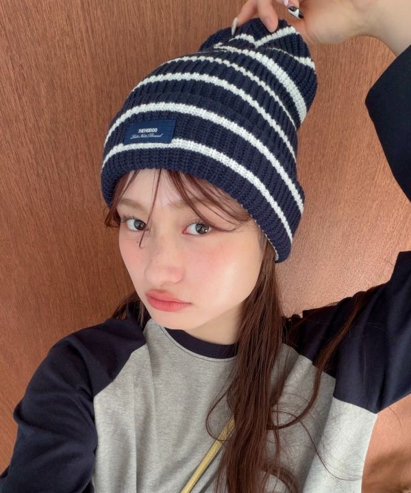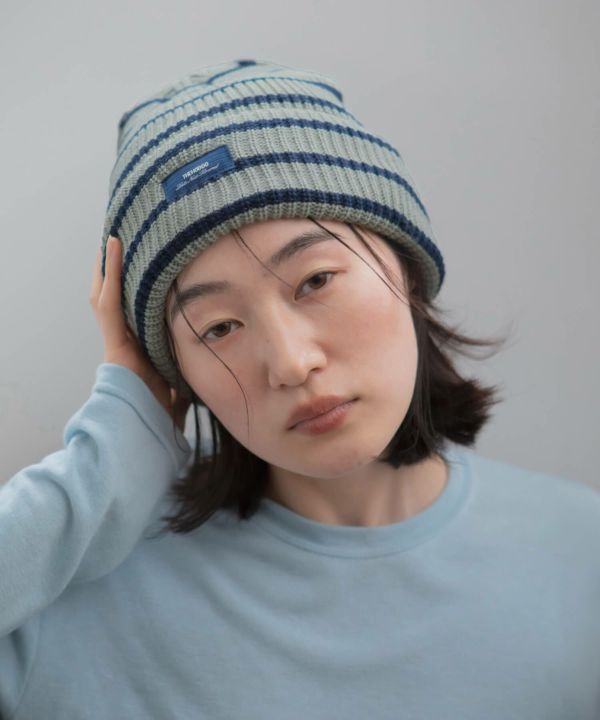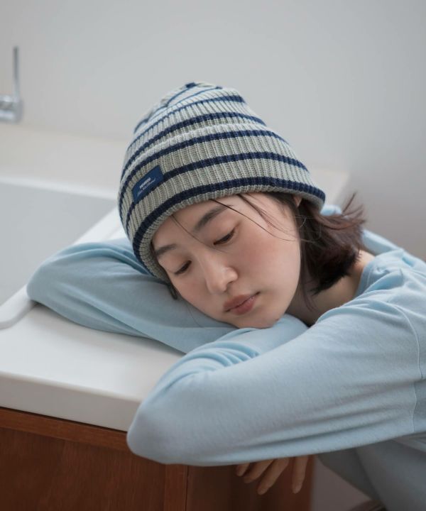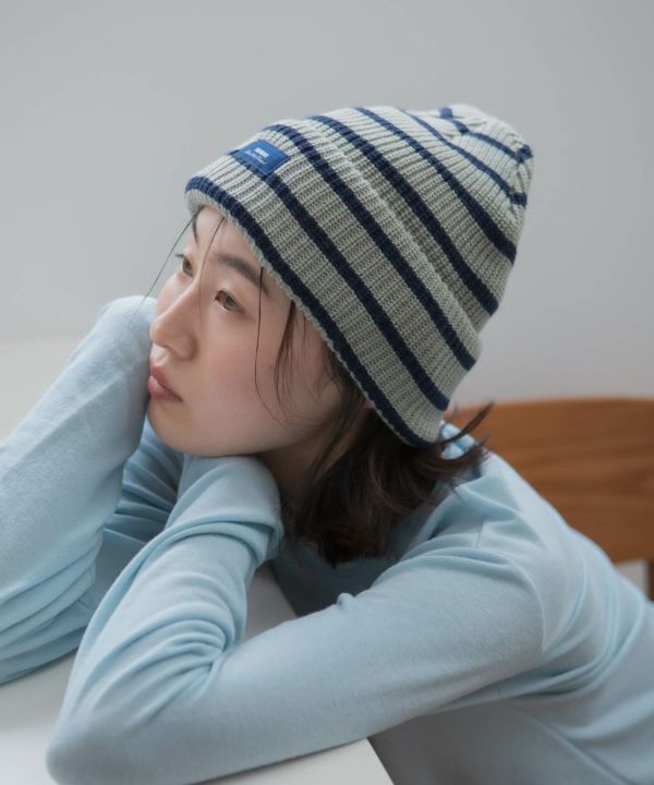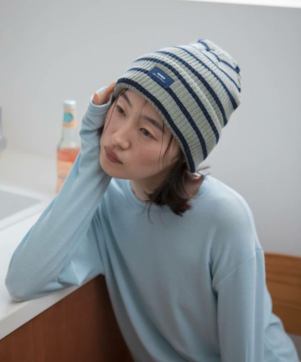 シンプルなコーデにさらっとプラスするだけで、スタイリングに動きが出るボーダービーニー。