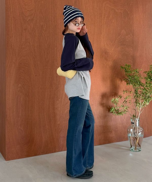 細めのピッチで入れた配色ボーダーが、カジュアルながらもどこか落ち着いた印象に仕上げてくれます。
