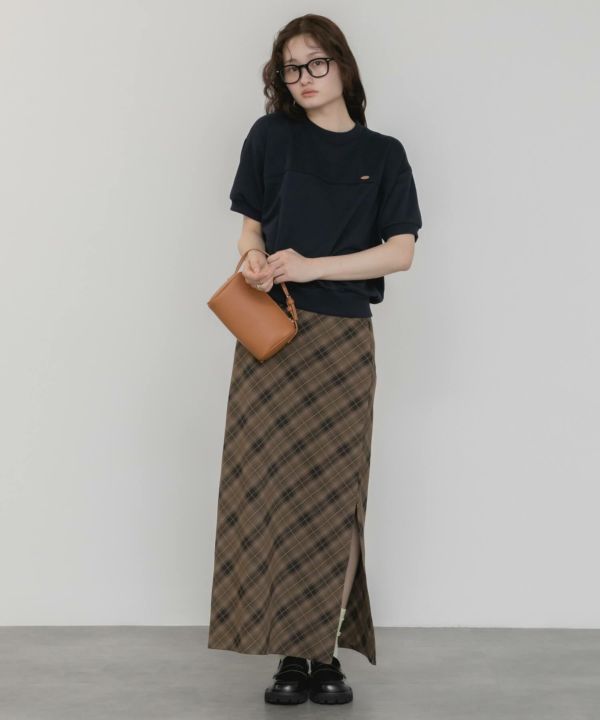 チェック柄のロングスカートと合わせてレトロなムードに寄せたり、