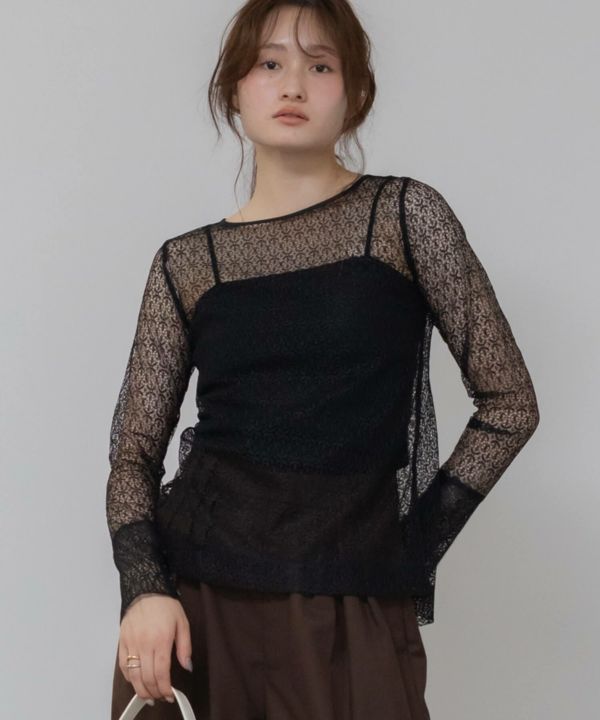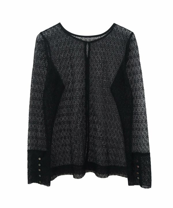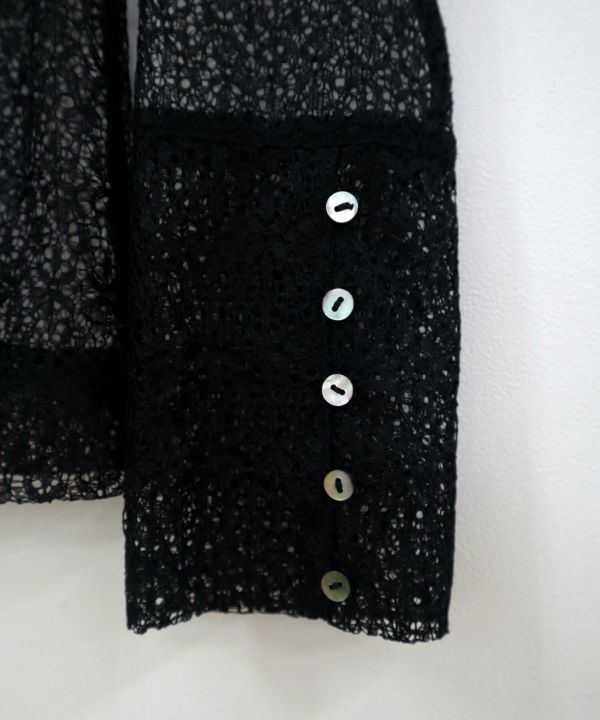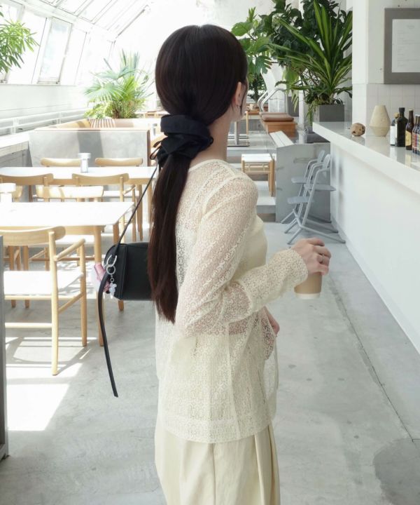 細やかなレースが美しく映える、前後2WAY仕様の長袖ブラウス。